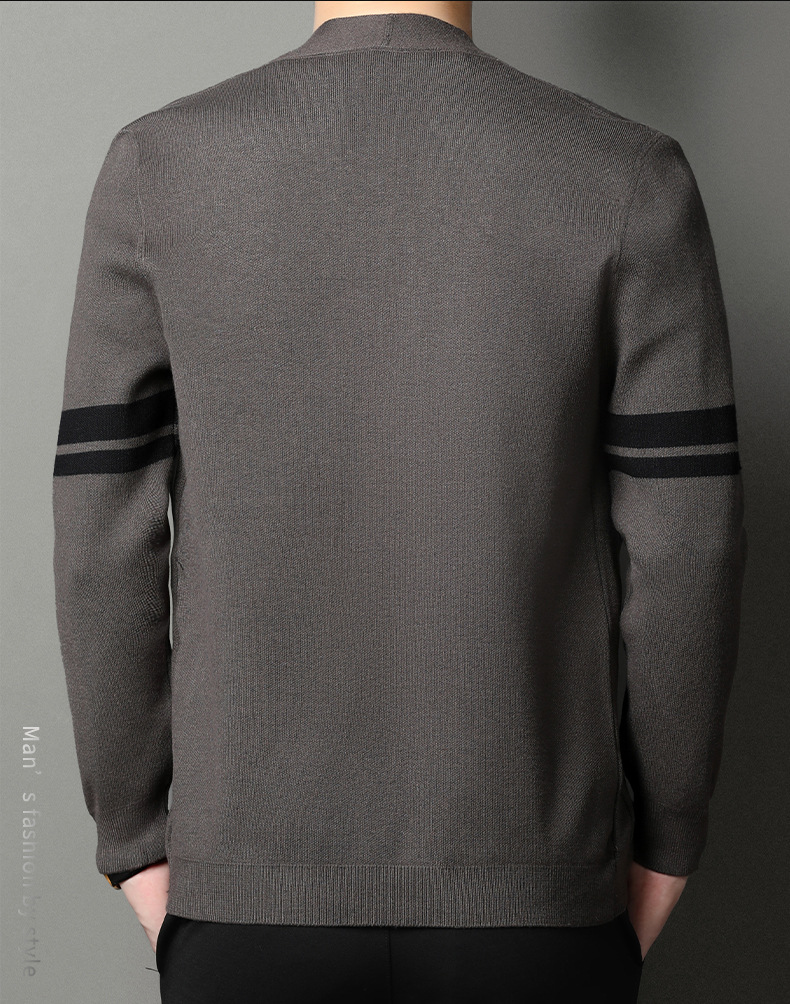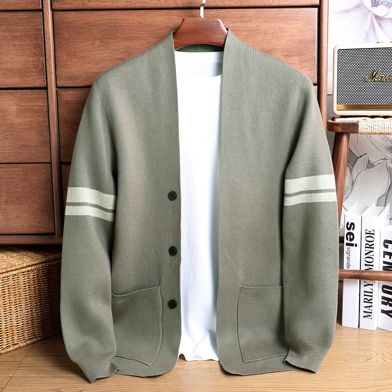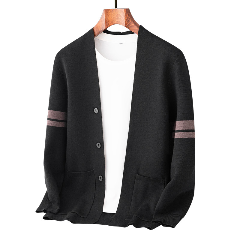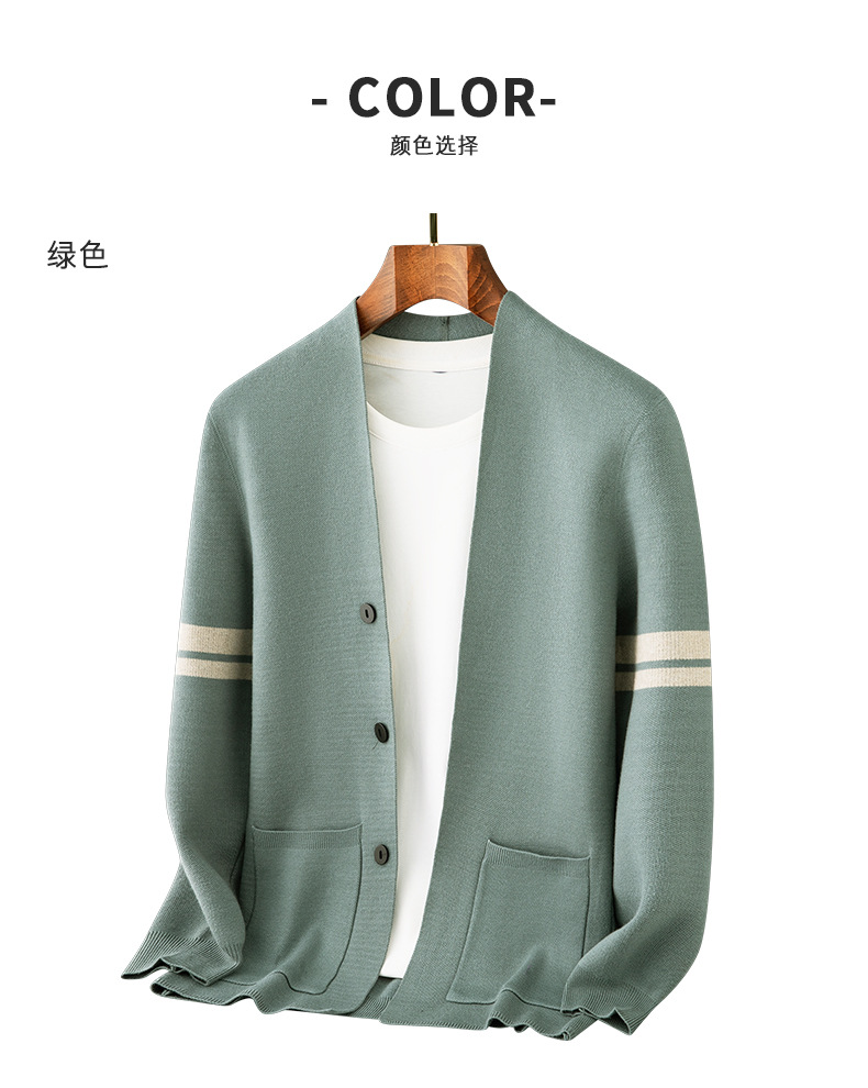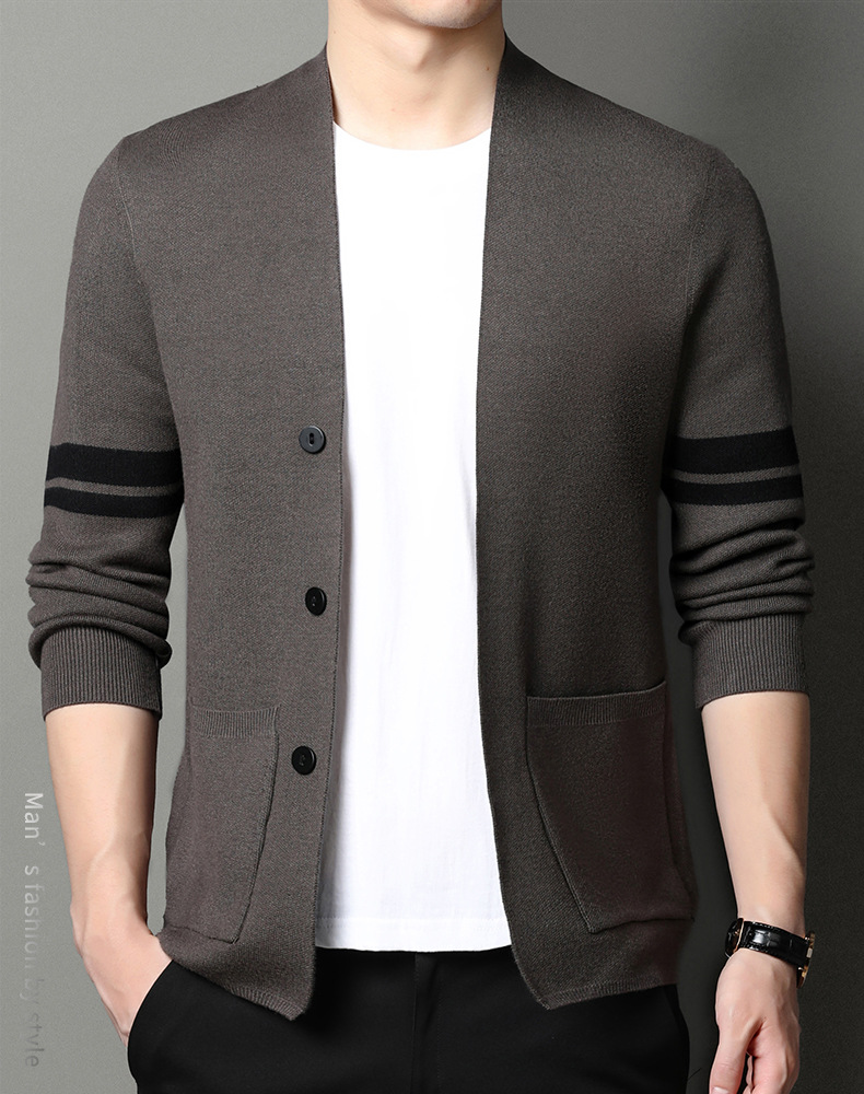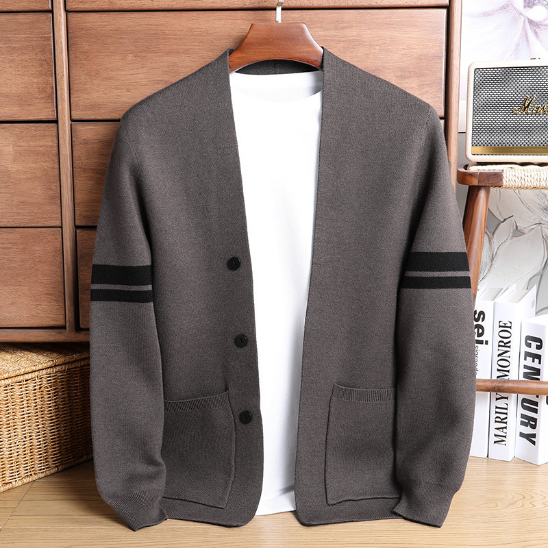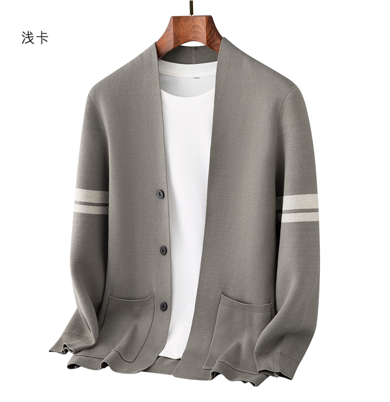 가을과 겨울 남자의 긴 소매 스웨터 니트웨어 두꺼운 혼합 울 가디건 가을 옷 포켓 자카드 V-넥 재킷