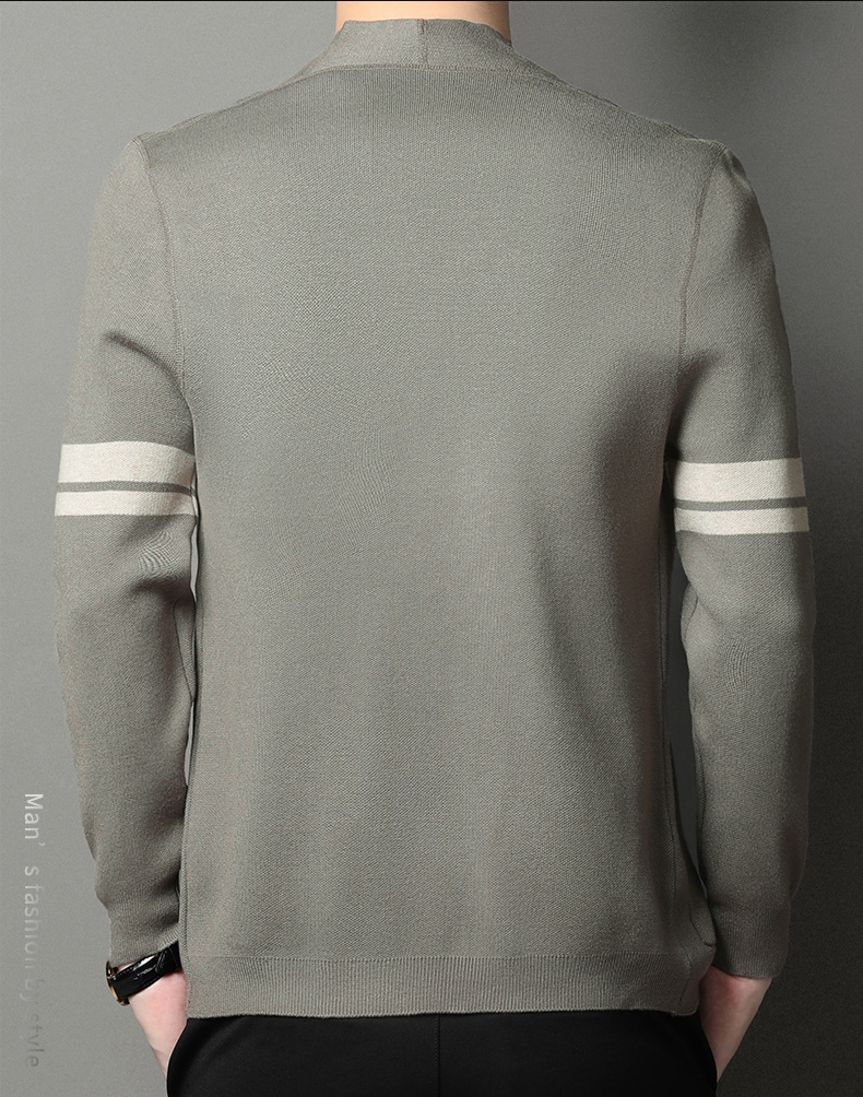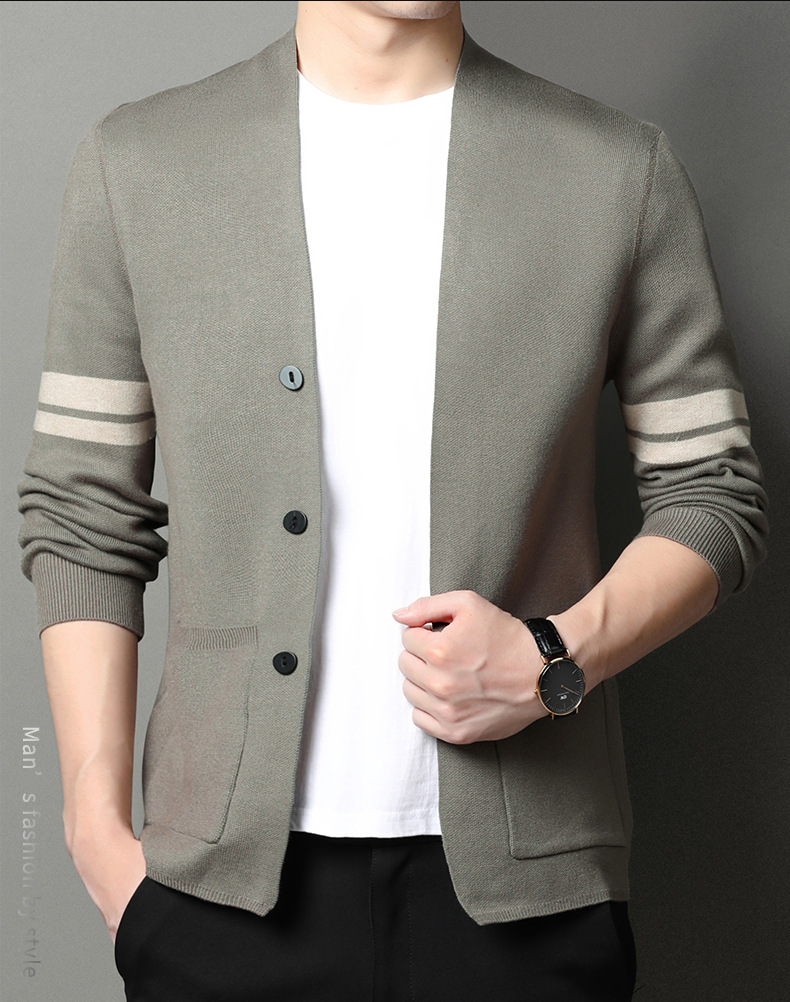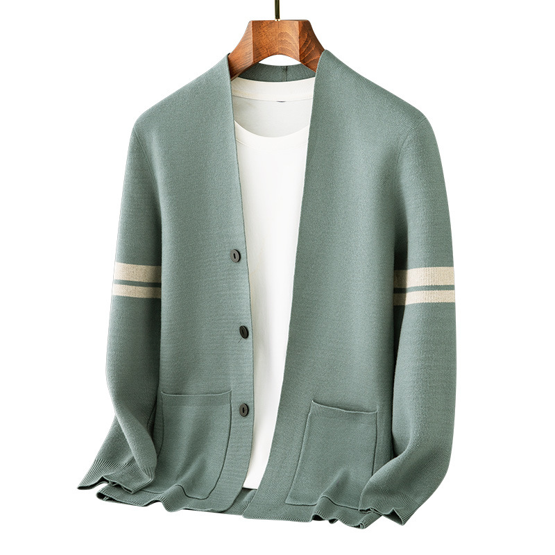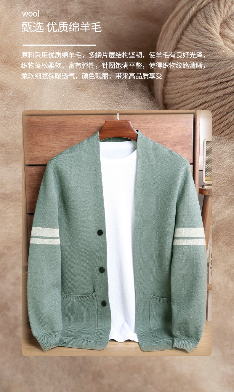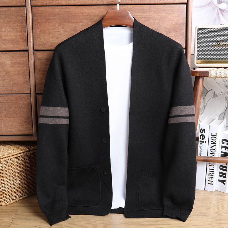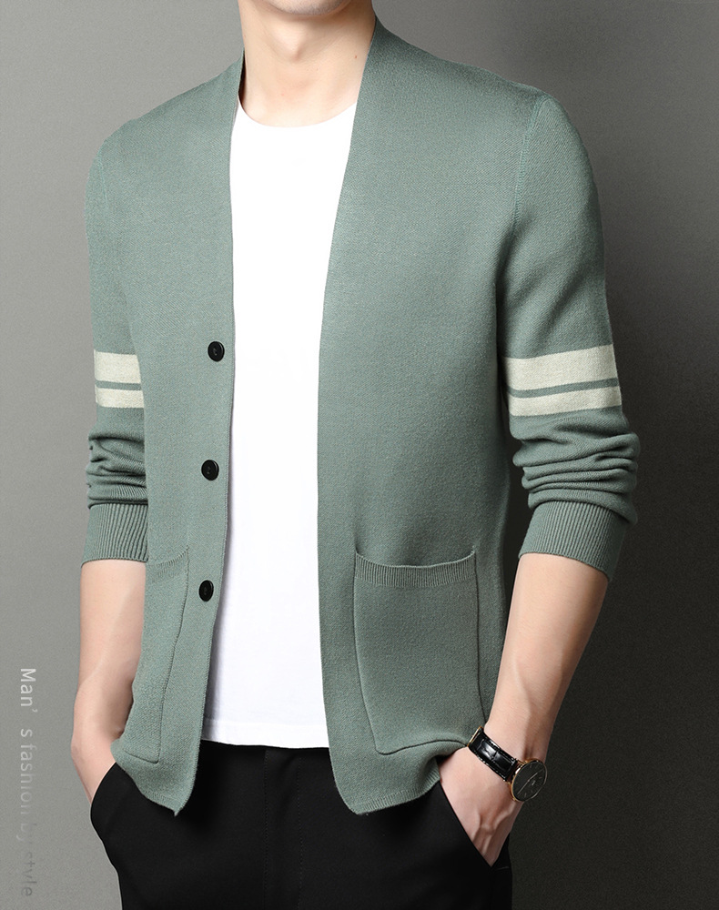 가을과 겨울 남자의 긴 소매 스웨터 니트웨어 두꺼운 혼합 울 가디건 가을 옷 포켓 자카드 V-넥 재킷