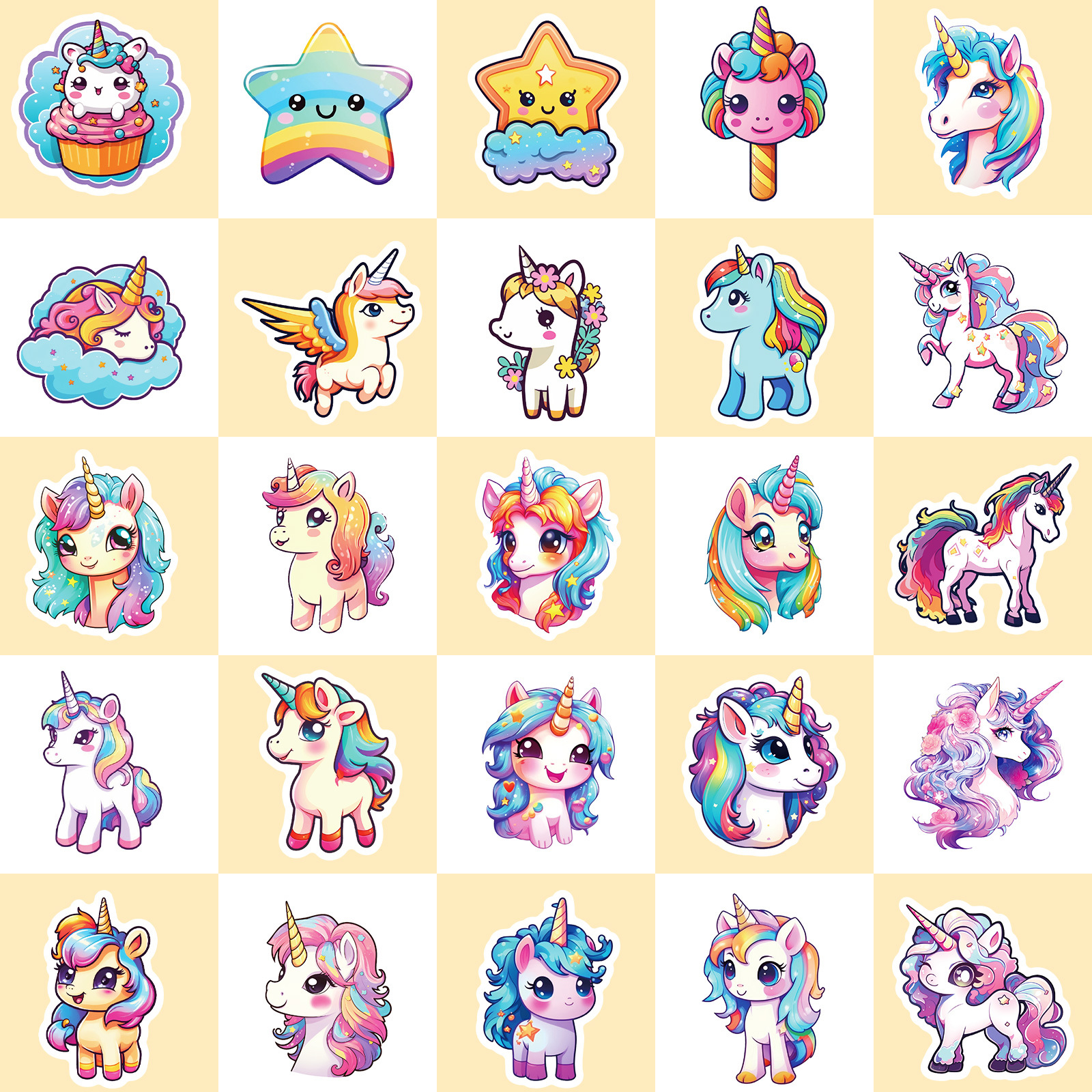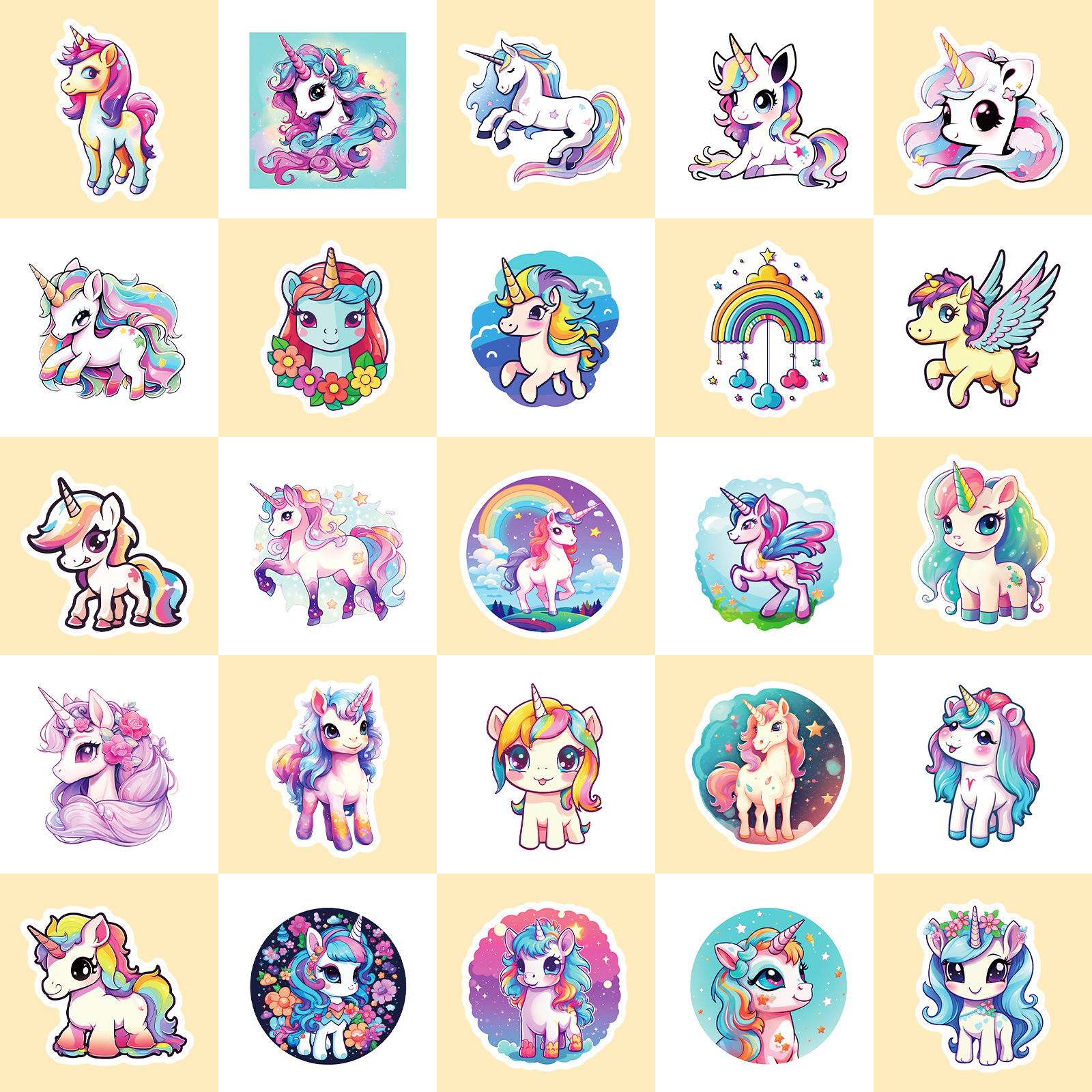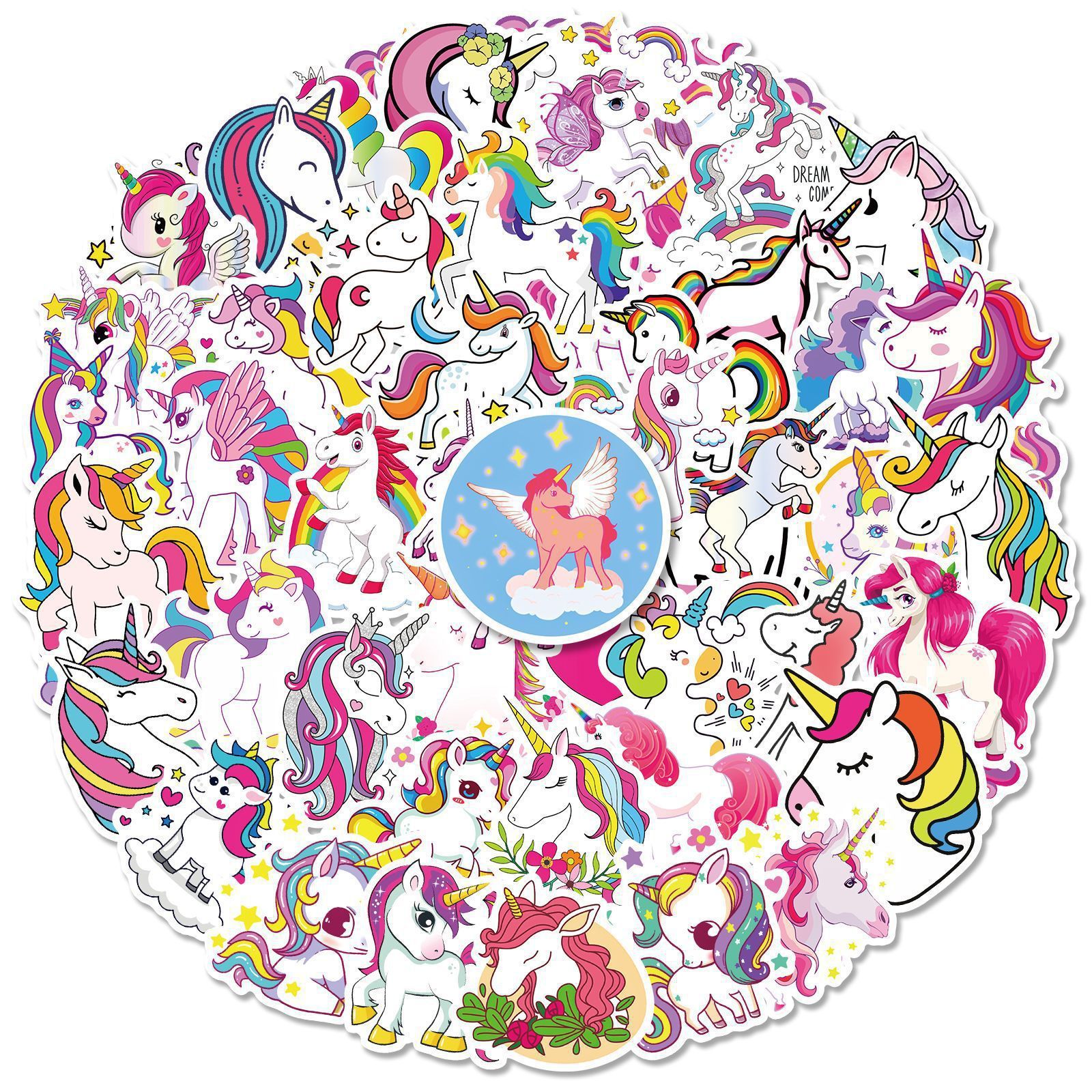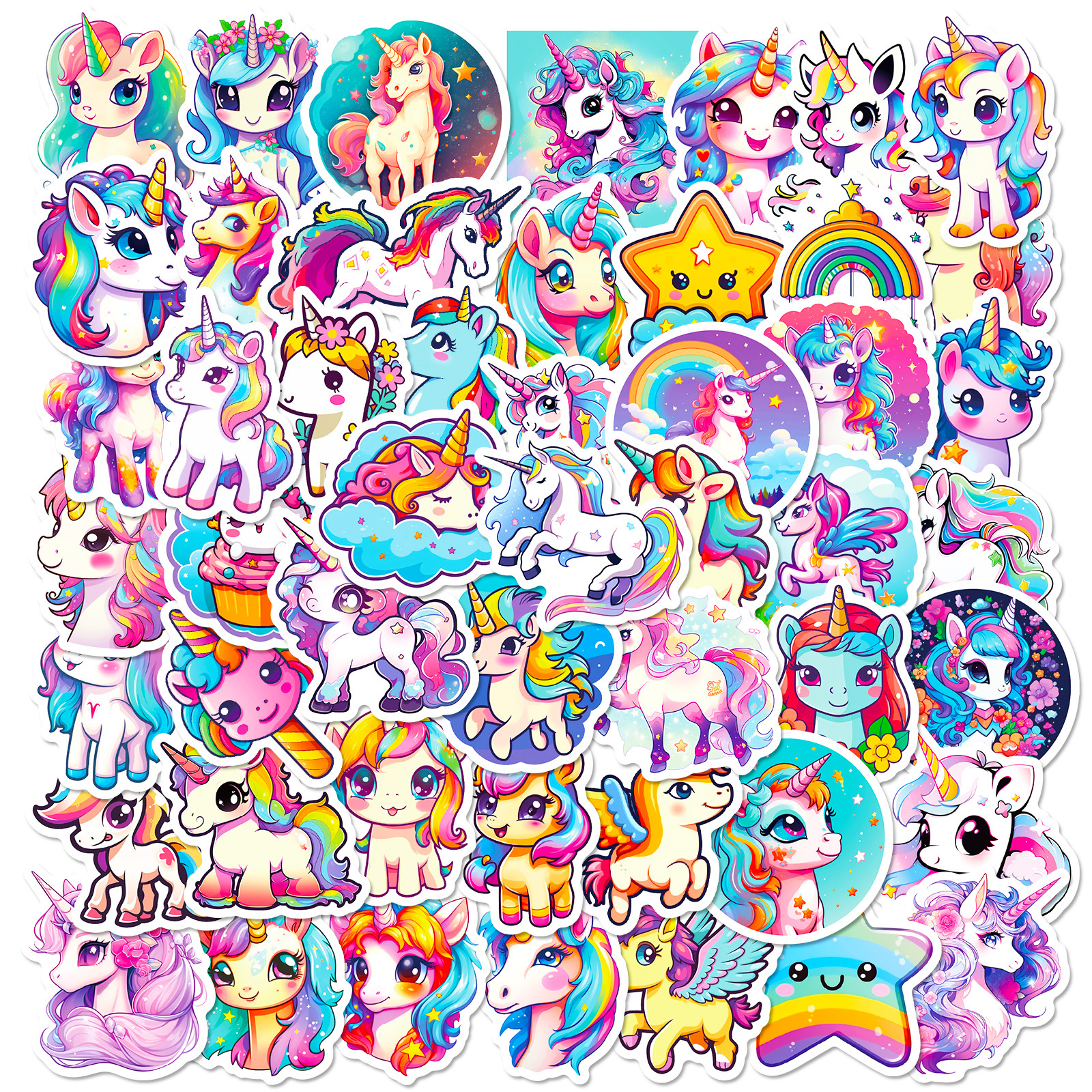 50 귀여운 유니콘 스티커 국경 간 새로운 만화 유니콘 낙서 개인화 된 무지개 말 스티커