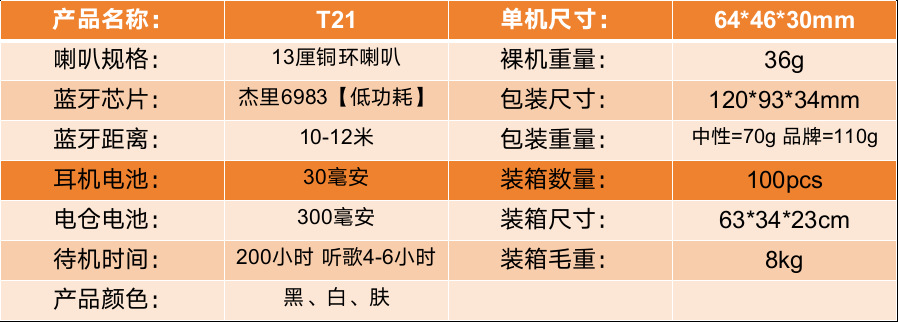 • [중립 박스형] T21 이어 클립 블루투스 헤드셋-피부색