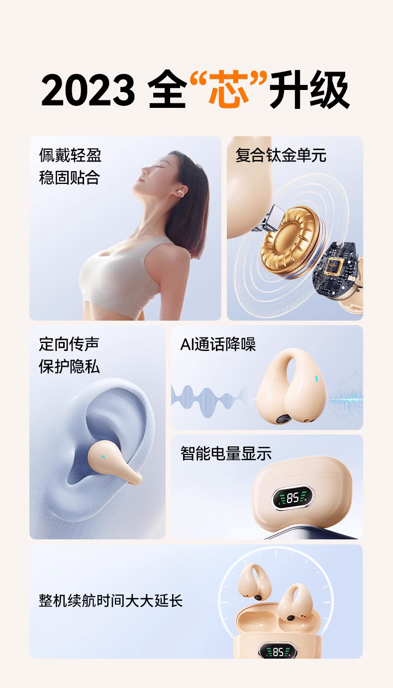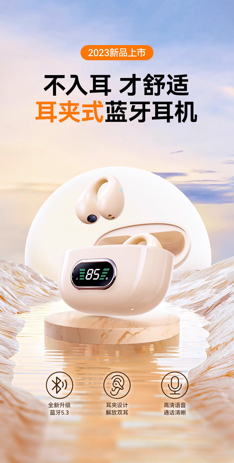 TWS 이어 클립 양방향 5.3 스테레오 충전 빈 블루투스 헤드셋을 하이 퀄리티 클립 온 귀 진정한 무선 디지털 디스플레이스토어 가기