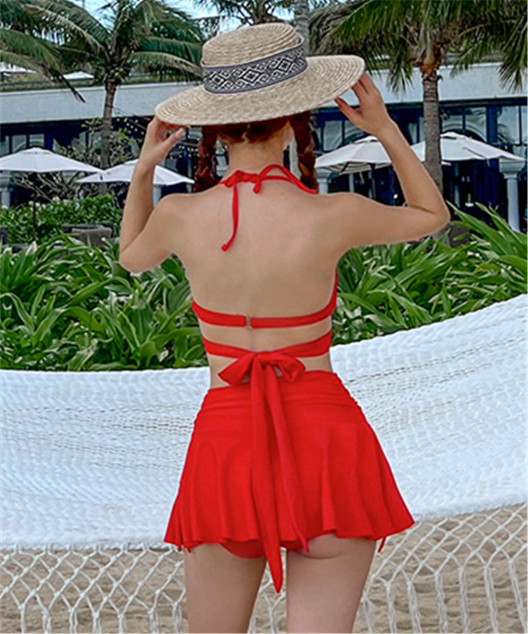 섹시한 분할 수영복 여자의 치마 비키니 쓰리피스 세트 작은 가슴 강철 브래킷 나일론 패션 새로운 휴가 수영복