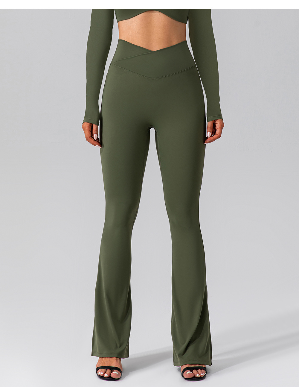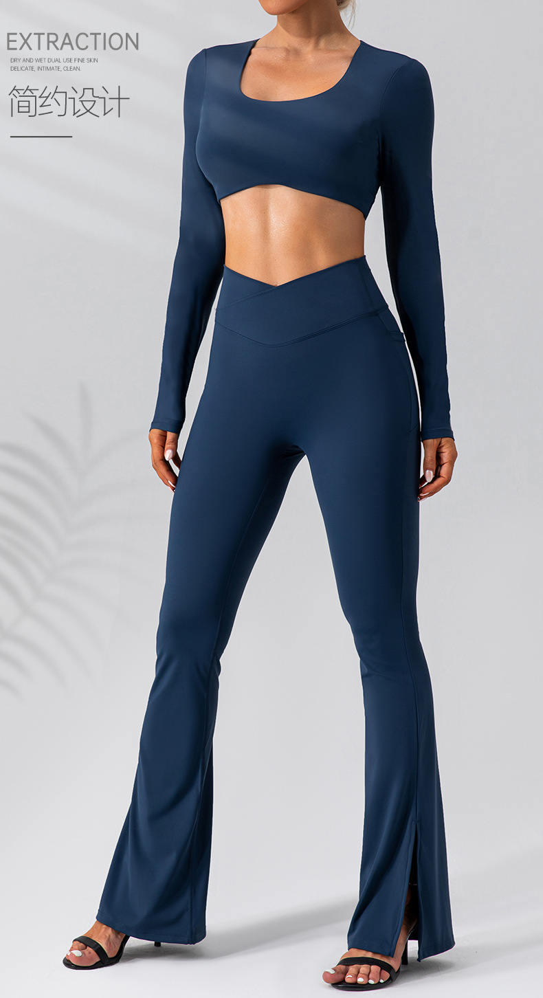 유럽과 미국 가을 알몸 탄성 스포츠 요가 플레어 팬츠 타이트 슬리밍 하이 웨이스트 복숭아 엉덩이 피트니스 바지