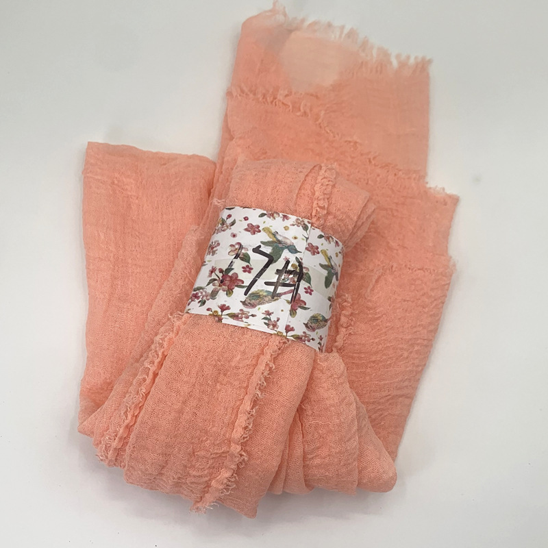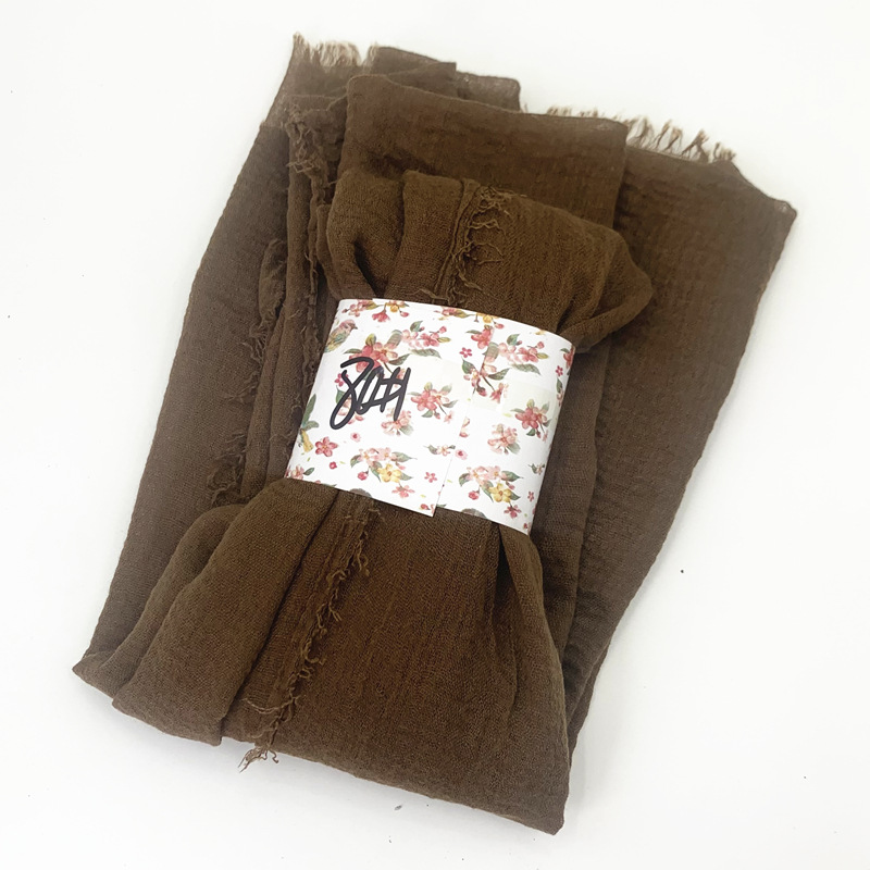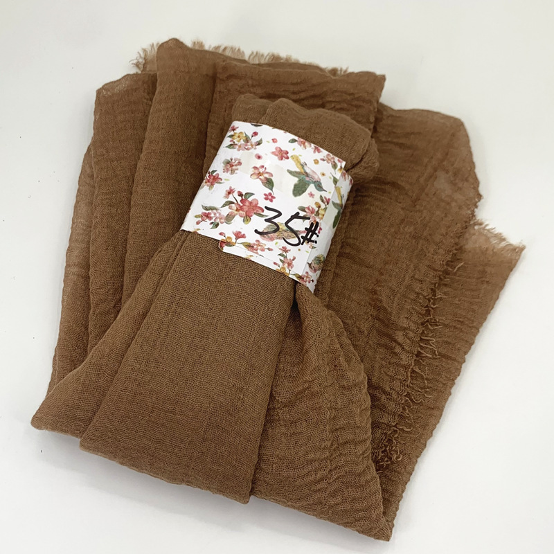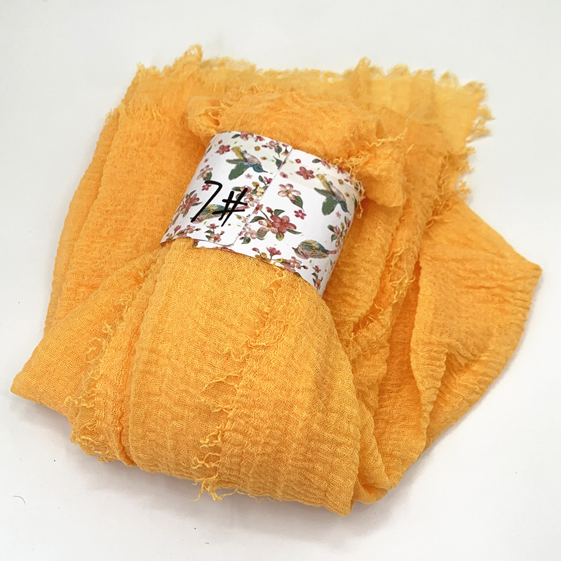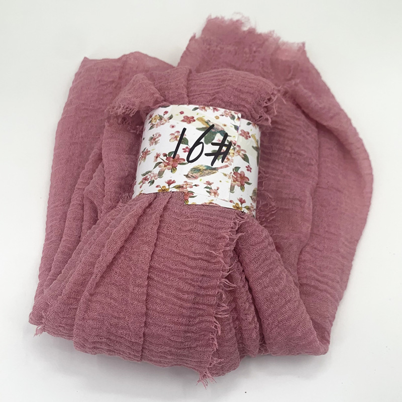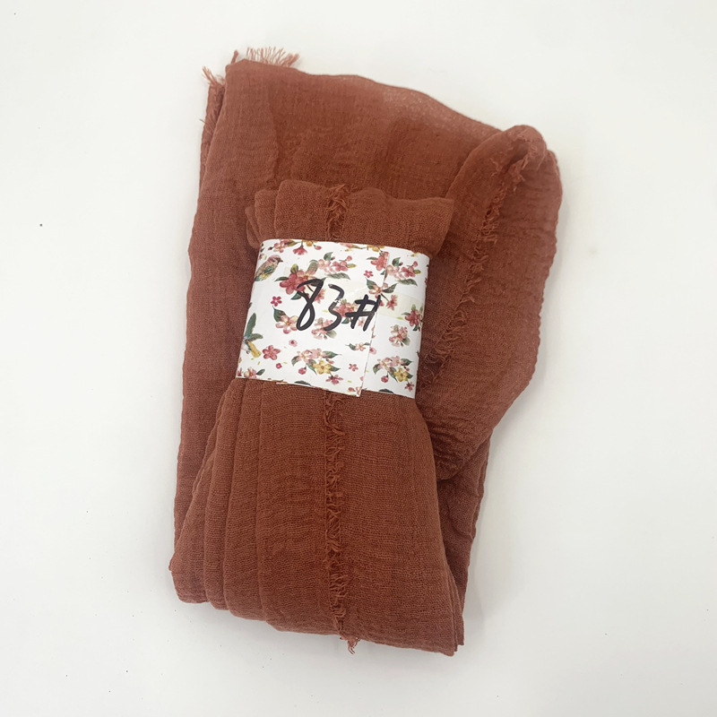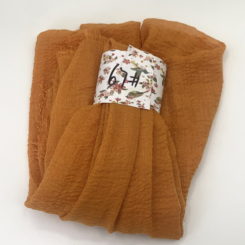 工厂直供褶皱纯色戒指绒TR棉自然皱棉麻毛须边泡泡纱巾