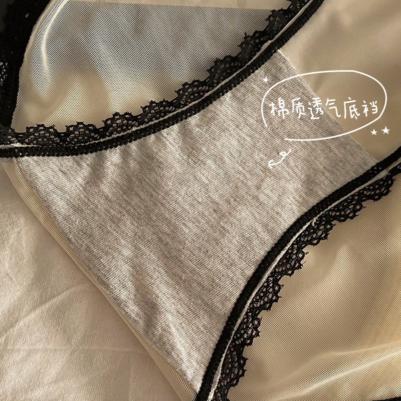순수한 욕망 새틴 속눈썹 레이스 섹시한 반투명 낮은 허리 삼각형 팬티 어린 소녀 면 스톨 항균 통기성 얇은