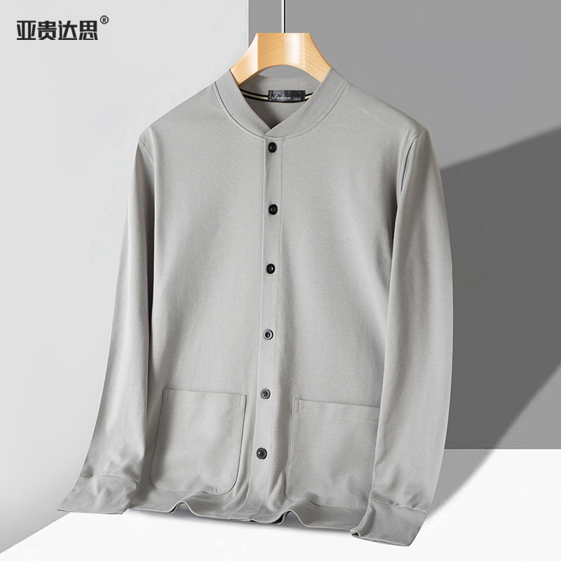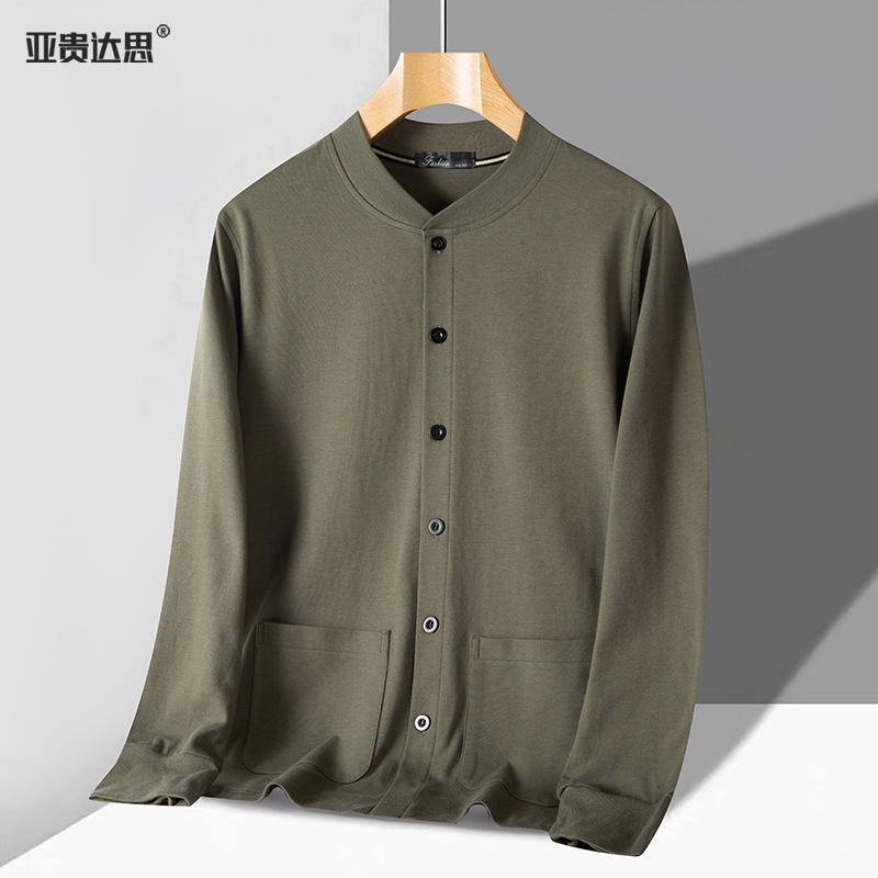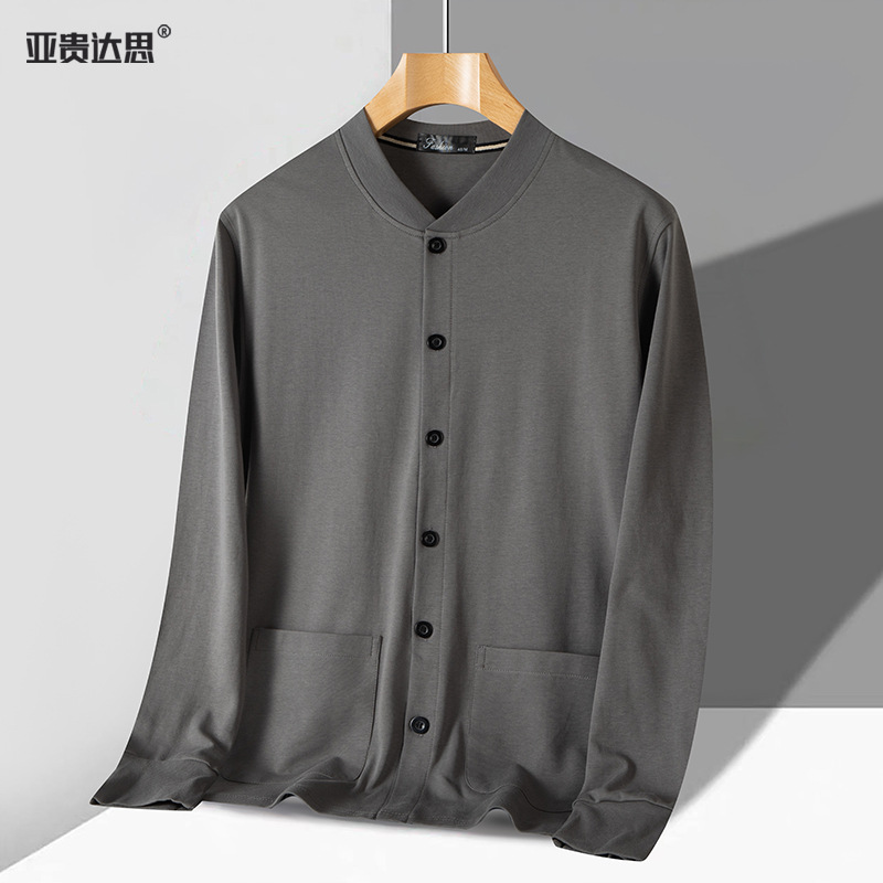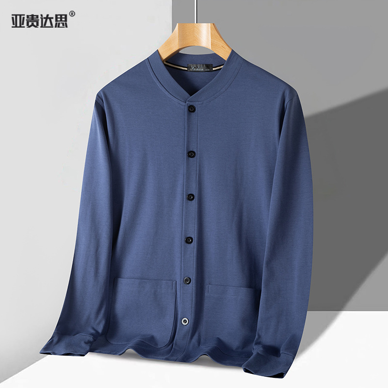 중년 및 노인 퓨어 코튼 가디건 긴팔 티셔츠 중년 남성 퓨어 코튼 베이스 셔츠 할아버지 탑 아빠의 플러스 사이즈 언더셔츠