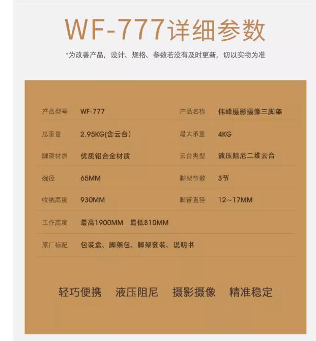 伟峰777三脚架可以分拆云台和三脚架架身,云台独立。架身可以独立。需要单独云台或者架身(无云台三脚架)可以选购。参数请见官网,可以选购。发货都有运费,运费根据远近不同有区别,特殊地方补运费。