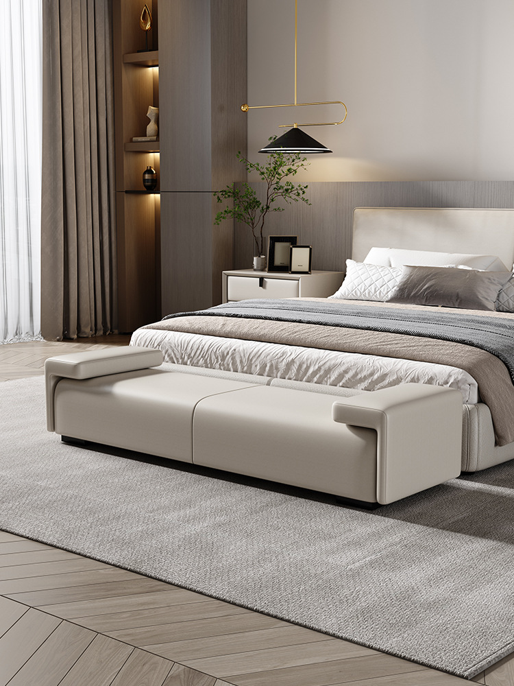 신발 교환 의자 긴 간단한 침실 코트 레이어 침대 보관소 소가죽 이탈리아 머리 머리맡 현대 의자스토어 가기
