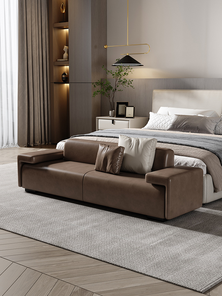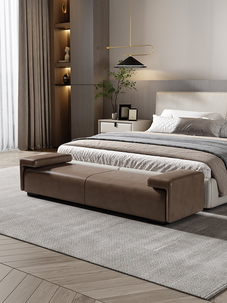 신발 교환 의자 긴 간단한 침실 코트 레이어 침대 보관소 소가죽 이탈리아 머리 머리맡 현대 의자