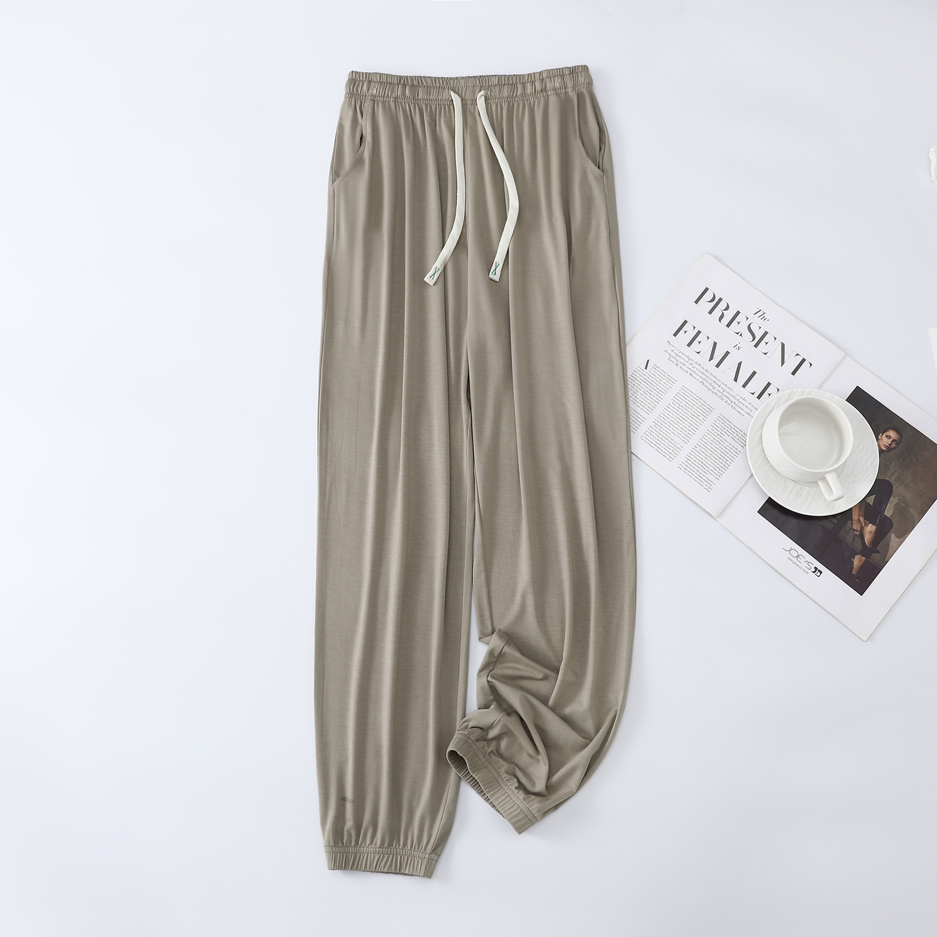 여름 남자의 모달 남자의 아이스 실크 얇은 바지 여름 플러스 사이즈 가정용 바지 안티 모기 바지 에어컨 파자마 바지스토어 가기