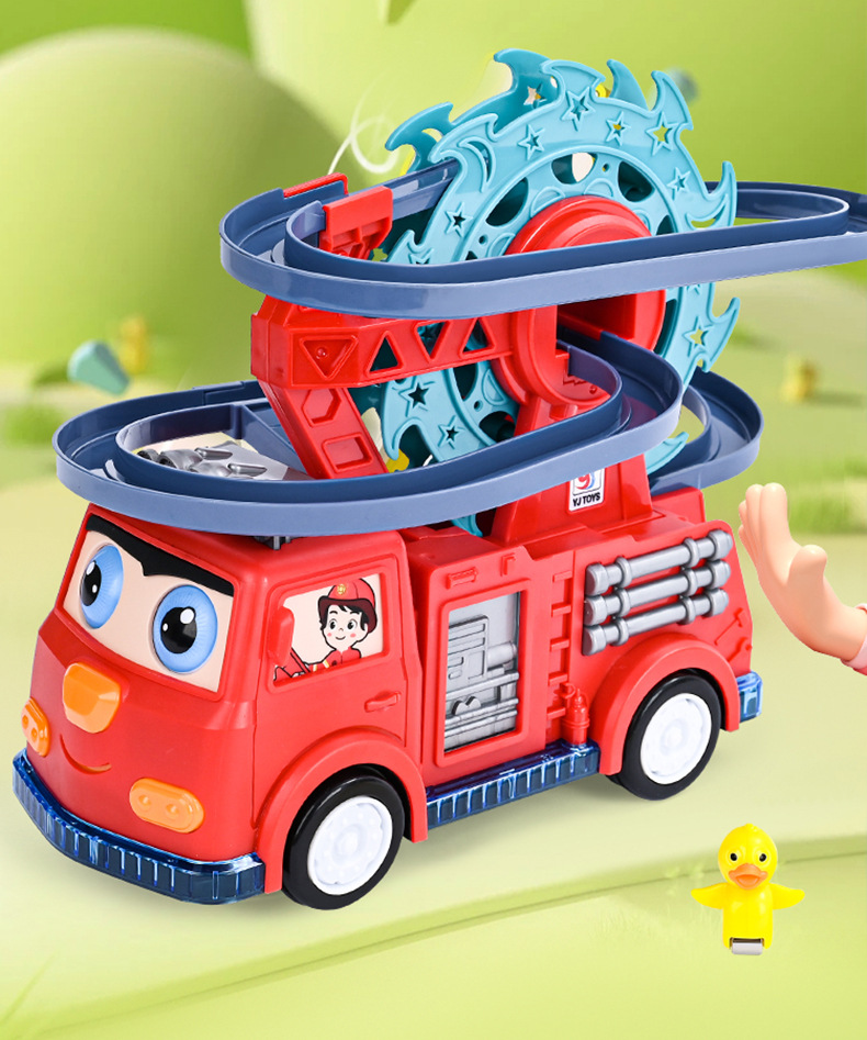 노란 오리 관람차 슬라이딩 트랙 소방차 어린이 장난감 전기 유니버설 워킹 라이트 음악 선물 새로운스토어 가기