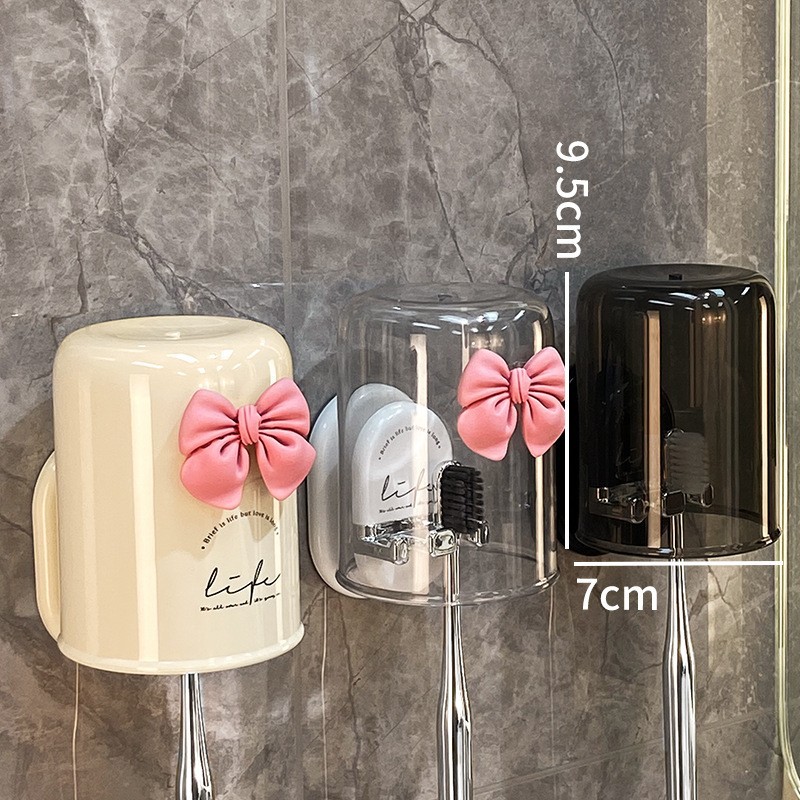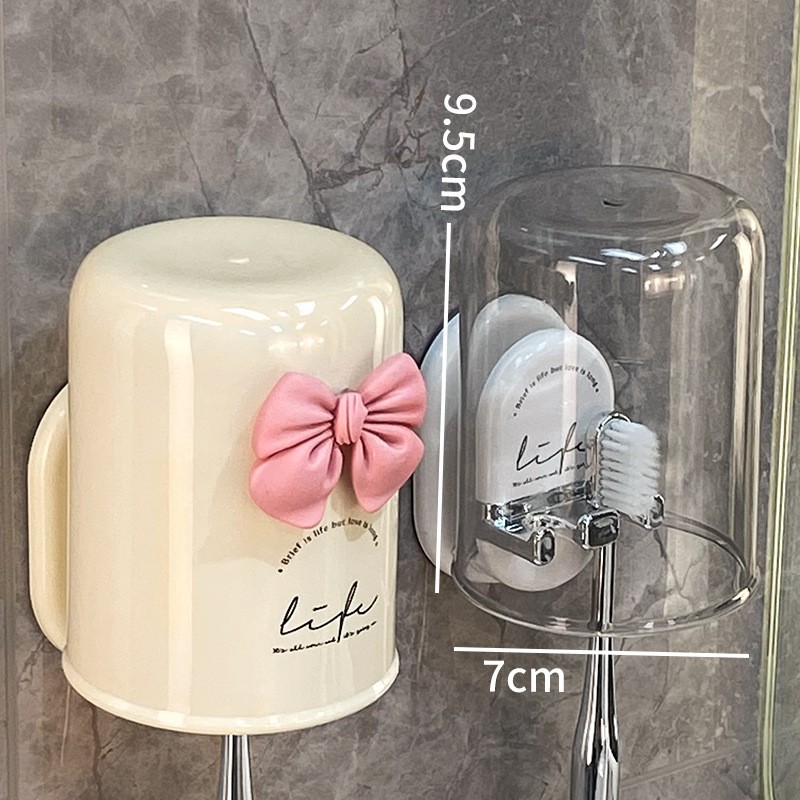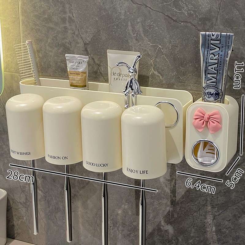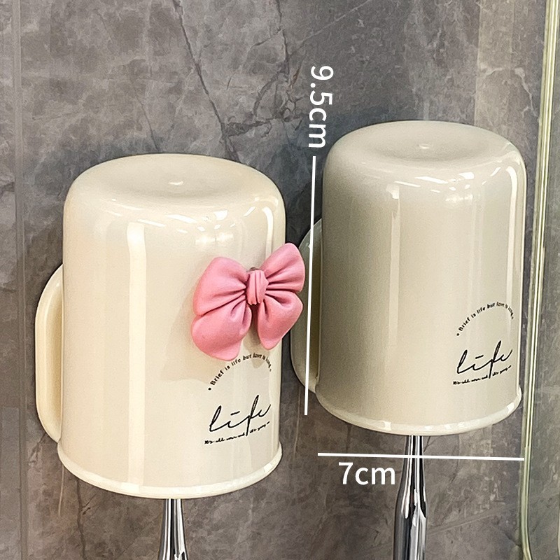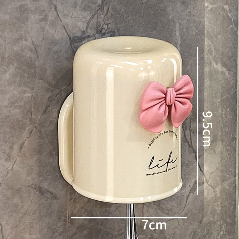 • 크림 색 [싱글 + 보우]-칫솔 컵 랙