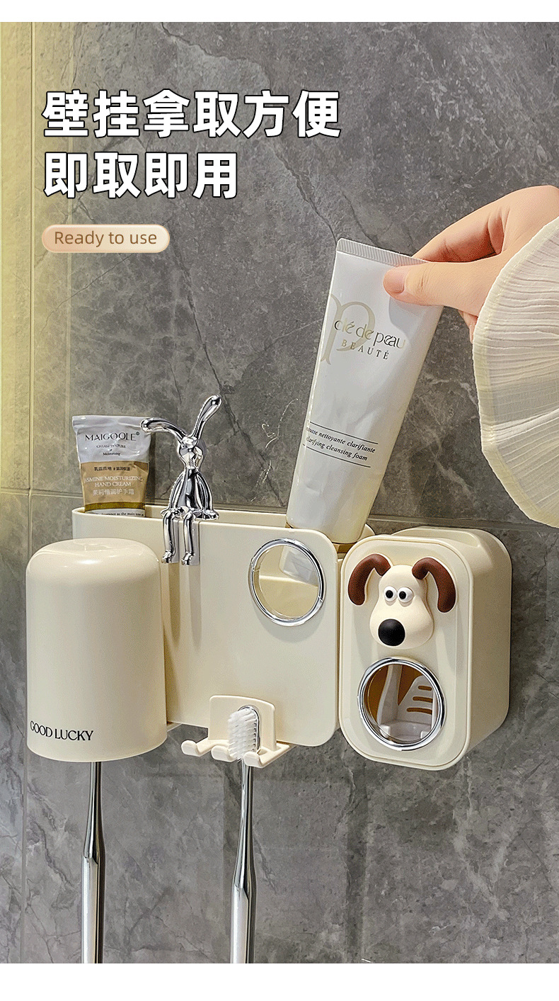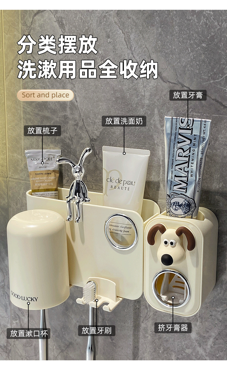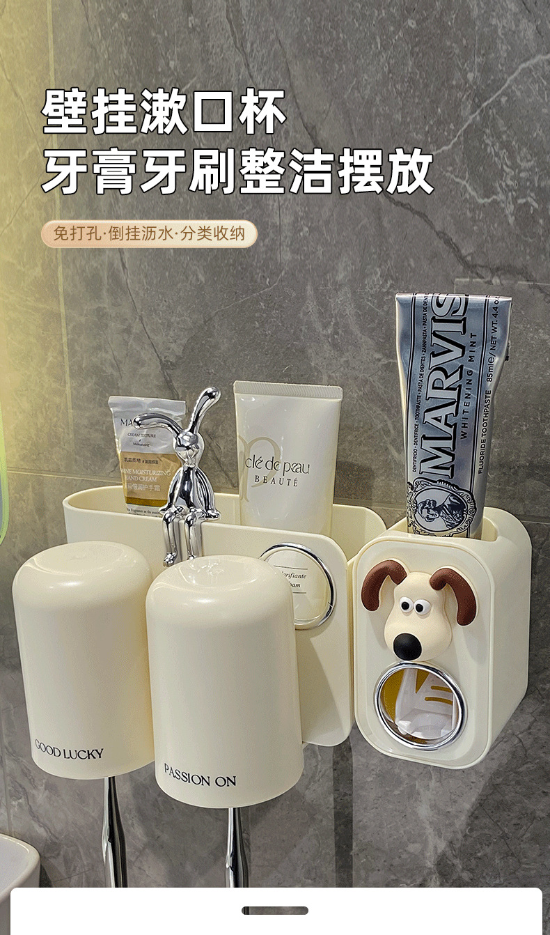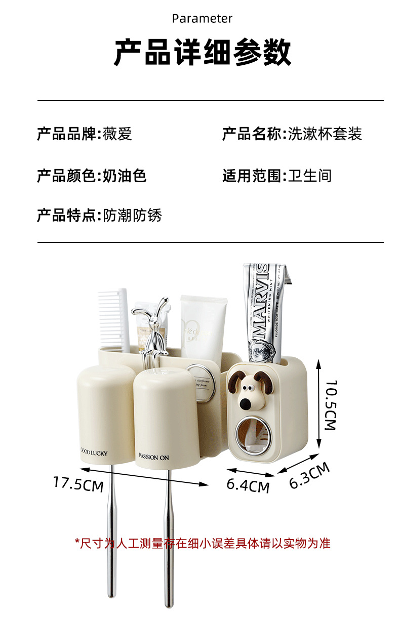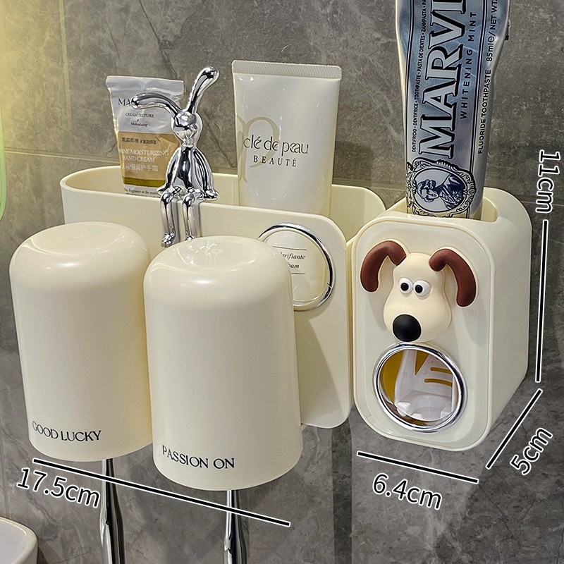 • 컵 2 개/칫솔 걸이 + 치약 압착기 + 개 머리 + 토끼 액세서리 (크림)