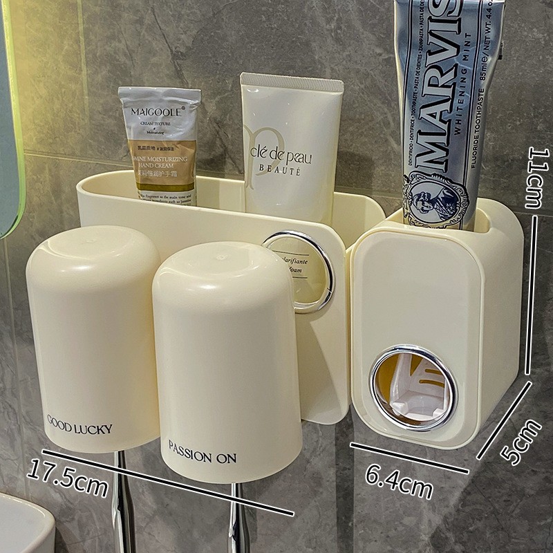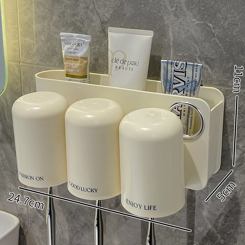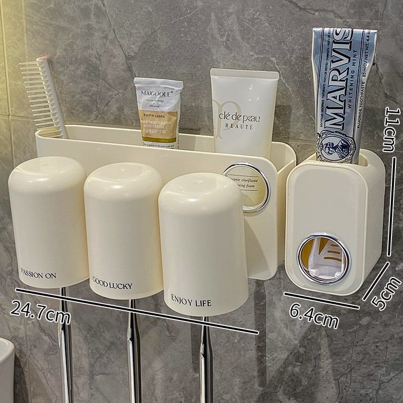 • 컵 3 개/칫솔 걸이 + 치약 압착기 (크림)