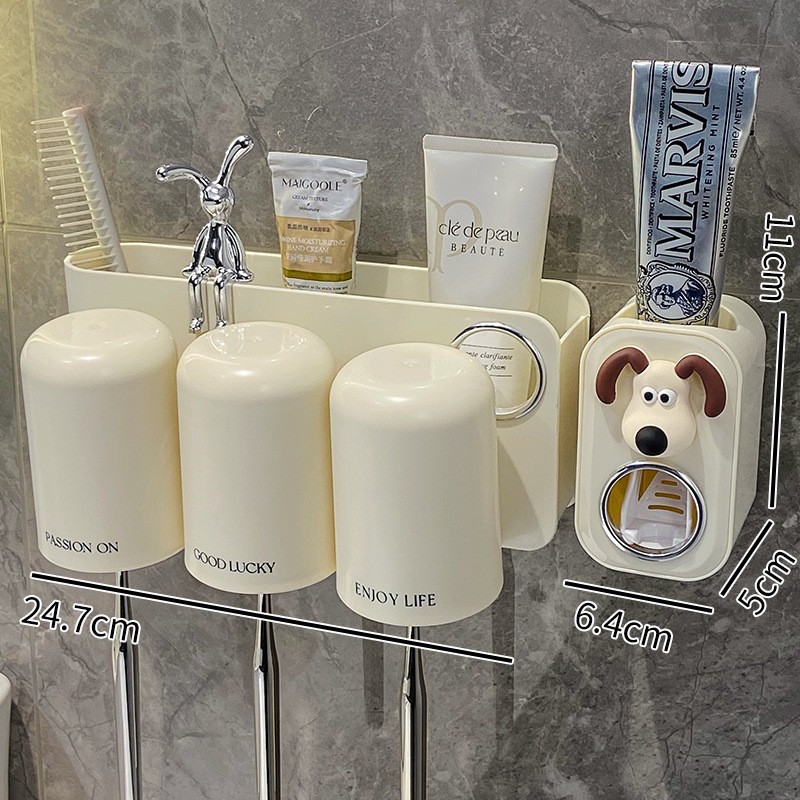 • 컵 3 개/칫솔 걸이 + 치약 압착기 + 개 머리 + 토끼 액세서리 (크림)