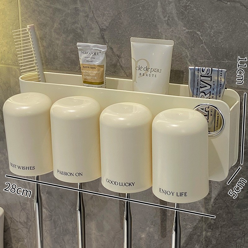 • 컵 4 개/칫솔 걸이 + 치약 압착기 (크림)