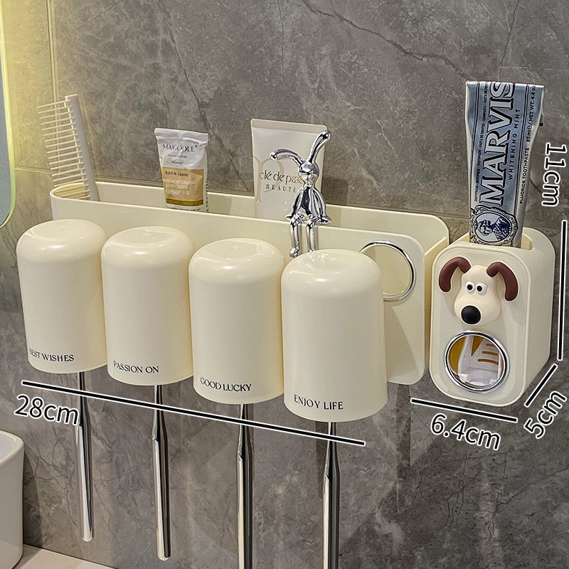 • 컵 4 개/칫솔 걸이 + 치약 압착기 + 개 머리 + 토끼 액세서리 (크림)