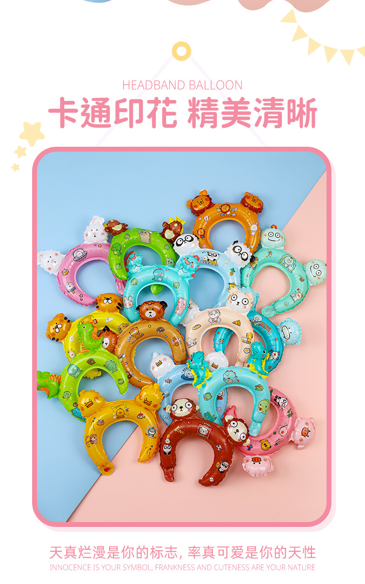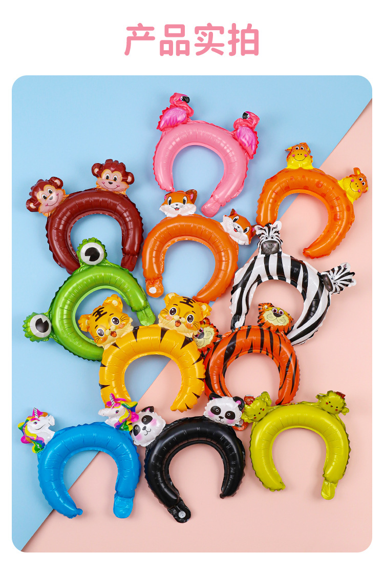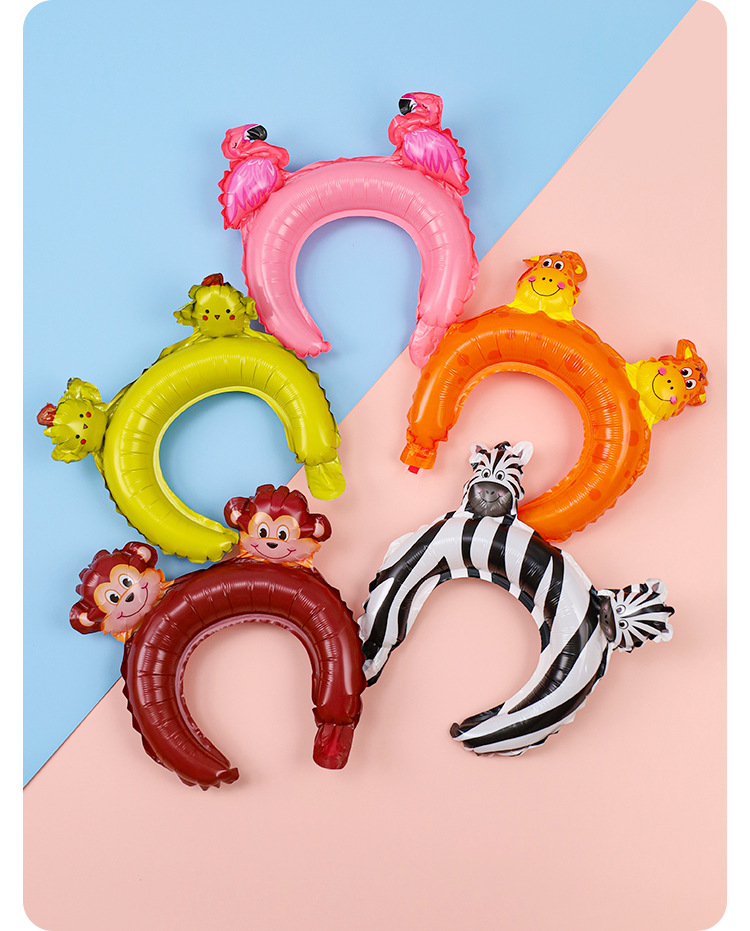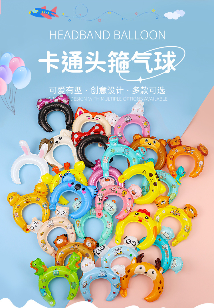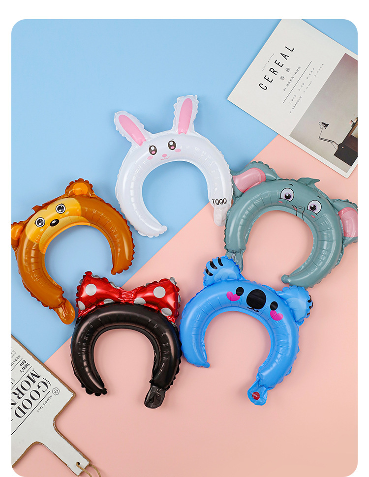 만화 동물 머리띠 풍선 더블 헤드 동물 알루미늄 필름 풍선 어린이 유치원 학교 파티 활동 도매스토어 가기