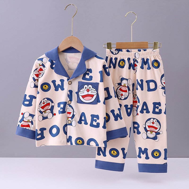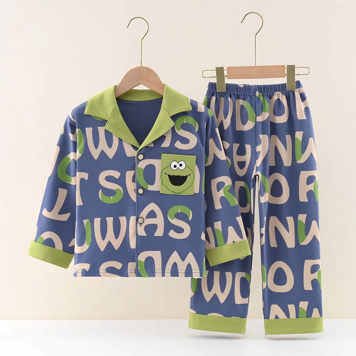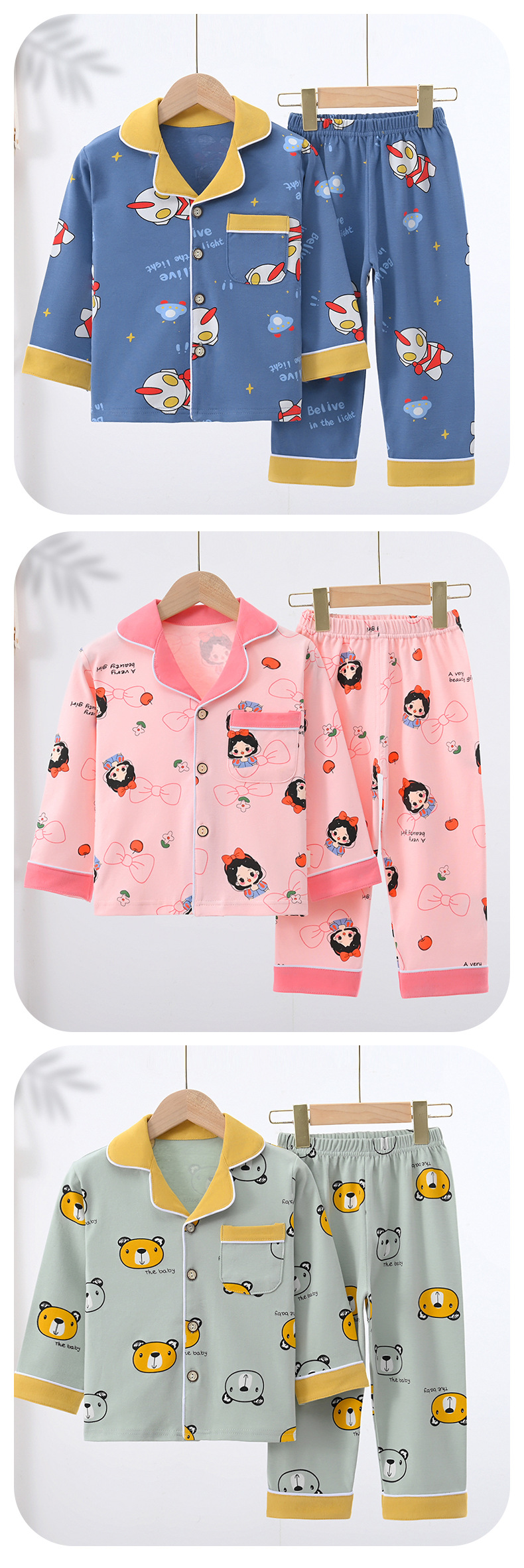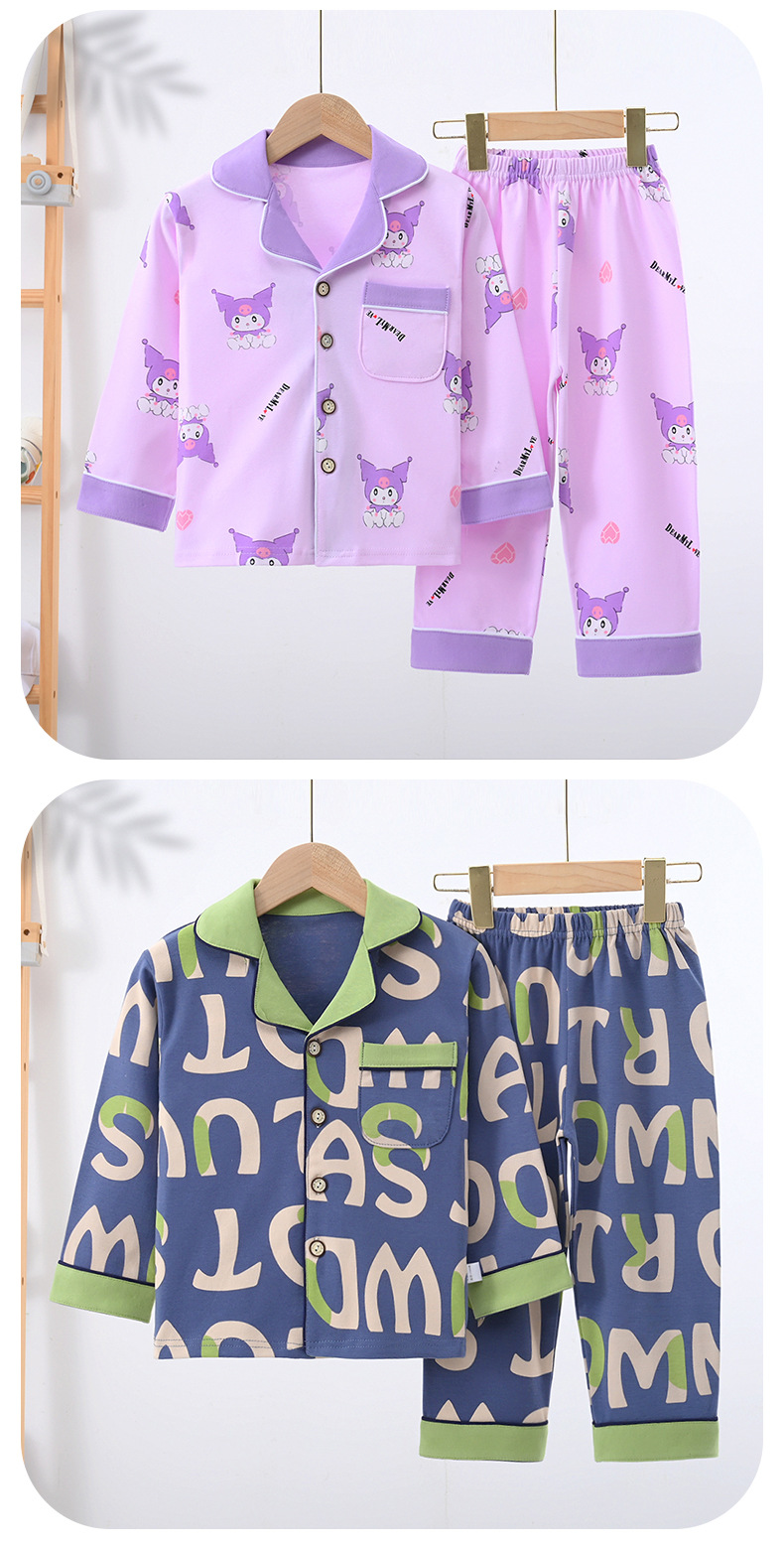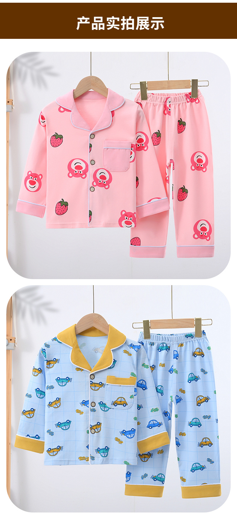 2025 년 봄과 가을 남학생과 여학생을위한 면화 홈 의류 긴팔 카디건 어린이 잠옷 소년 면화 세트
