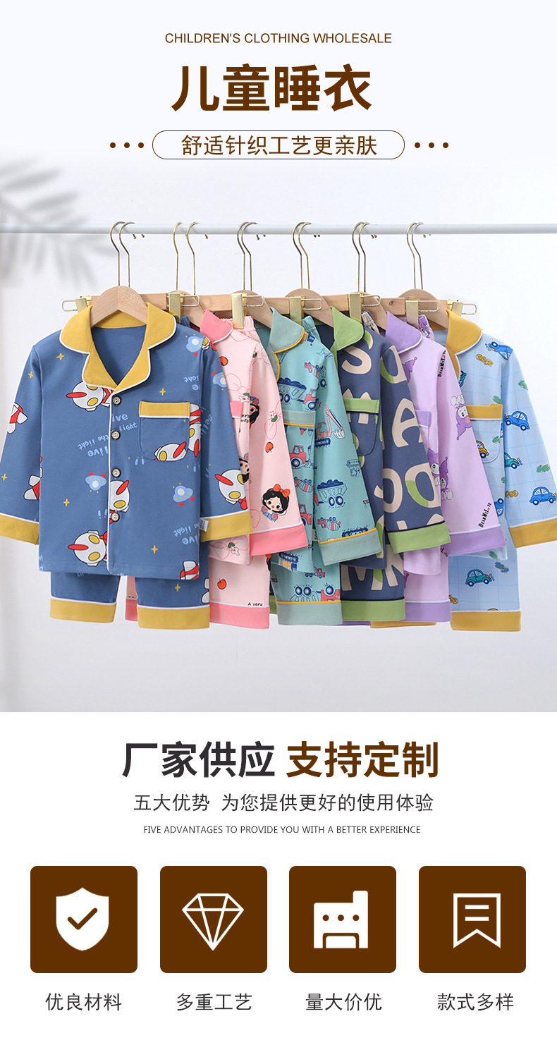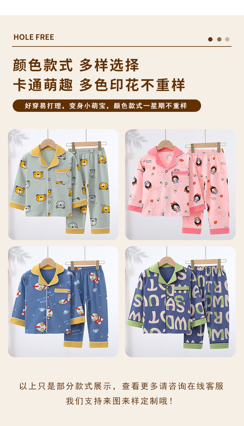 2025 년 봄과 가을 남학생과 여학생을위한 면화 홈 의류 긴팔 카디건 어린이 잠옷 소년 면화 세트스토어 가기