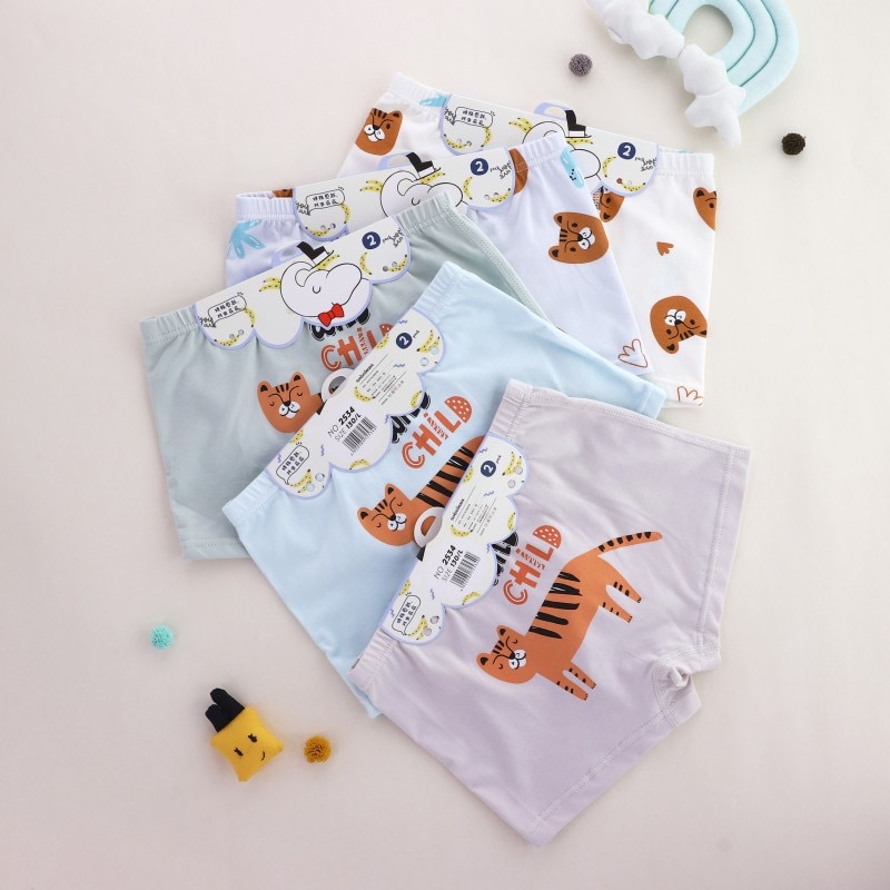Shule 남아 속옷 아동용 면 혼방 복서 통기성 소형, 중형 및 대형 아동용 엉덩이 클립이 없는 4 코너 반바지