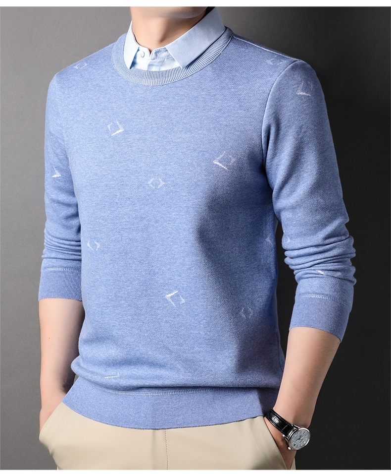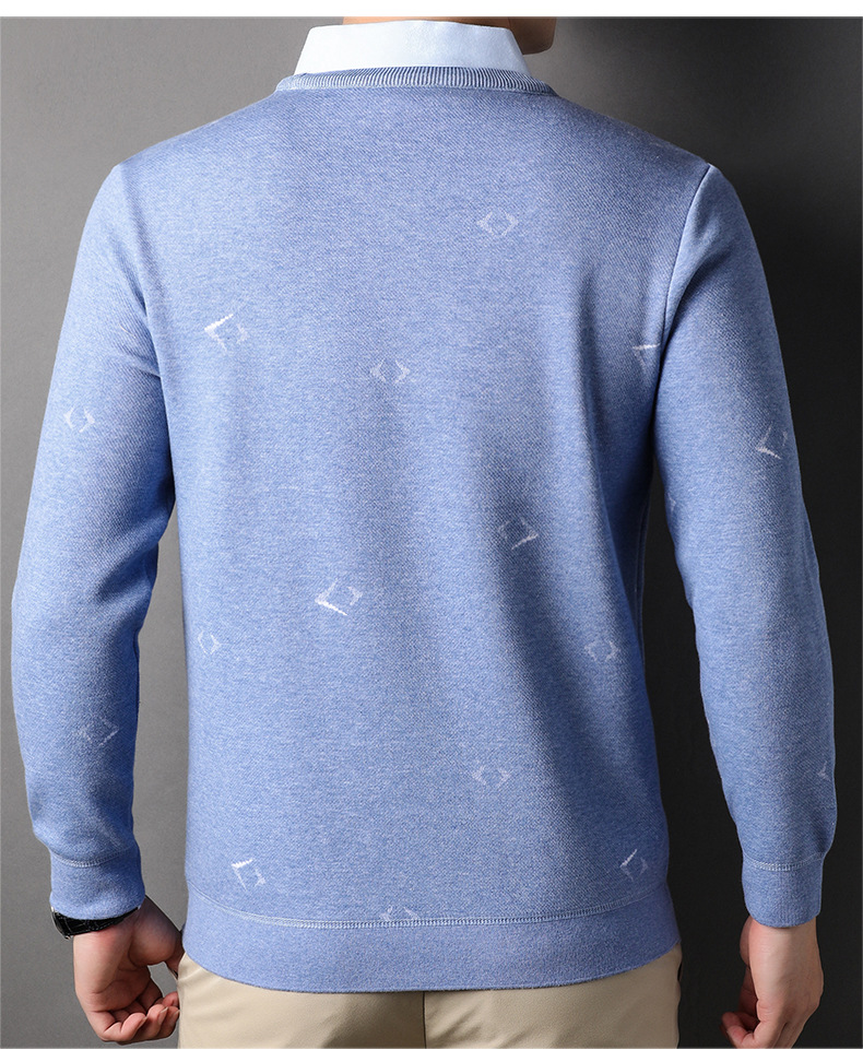 2025 봄 신상 남성 니트웨어 캐주얼 면 카라 남성 상의 페이크 투피스 원피스 도매 F025스토어 가기