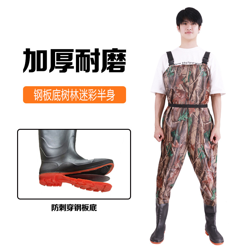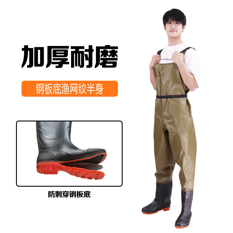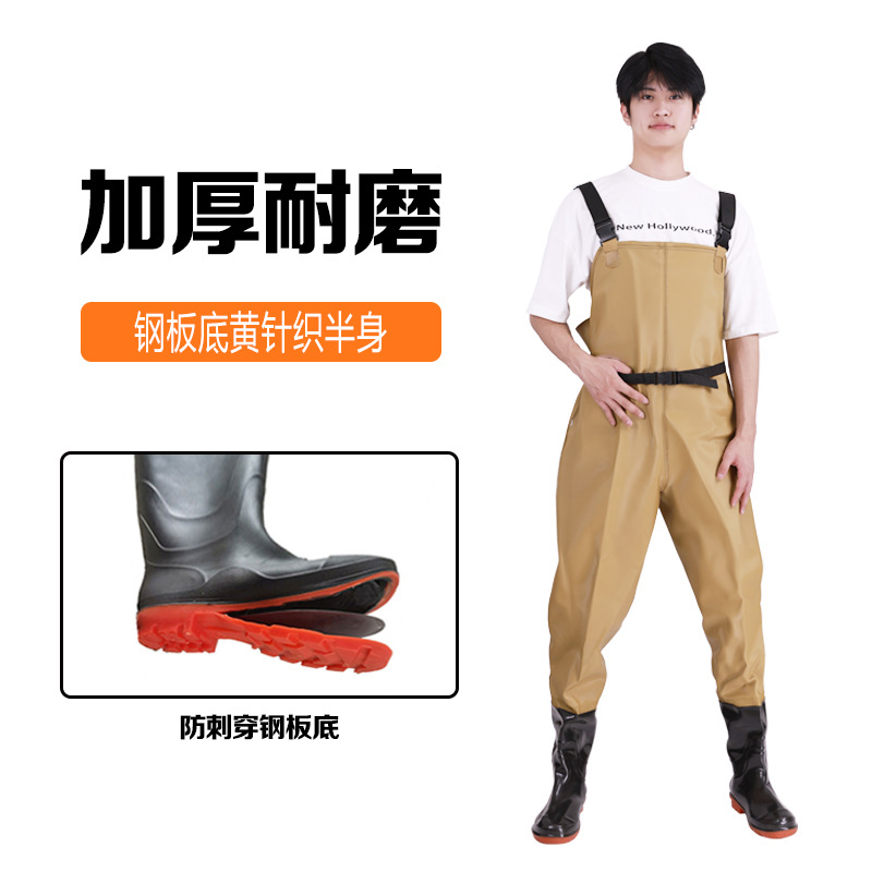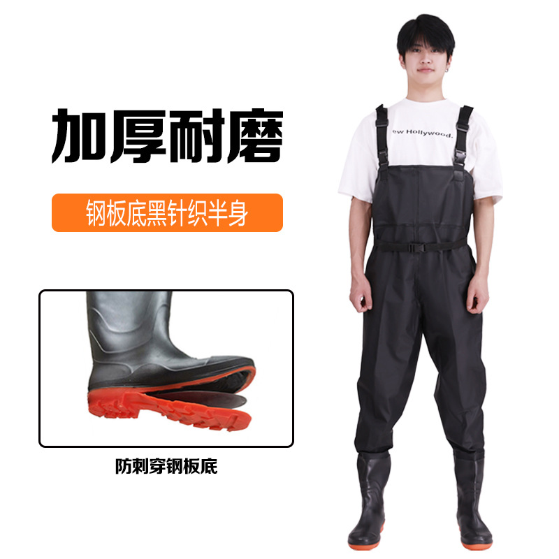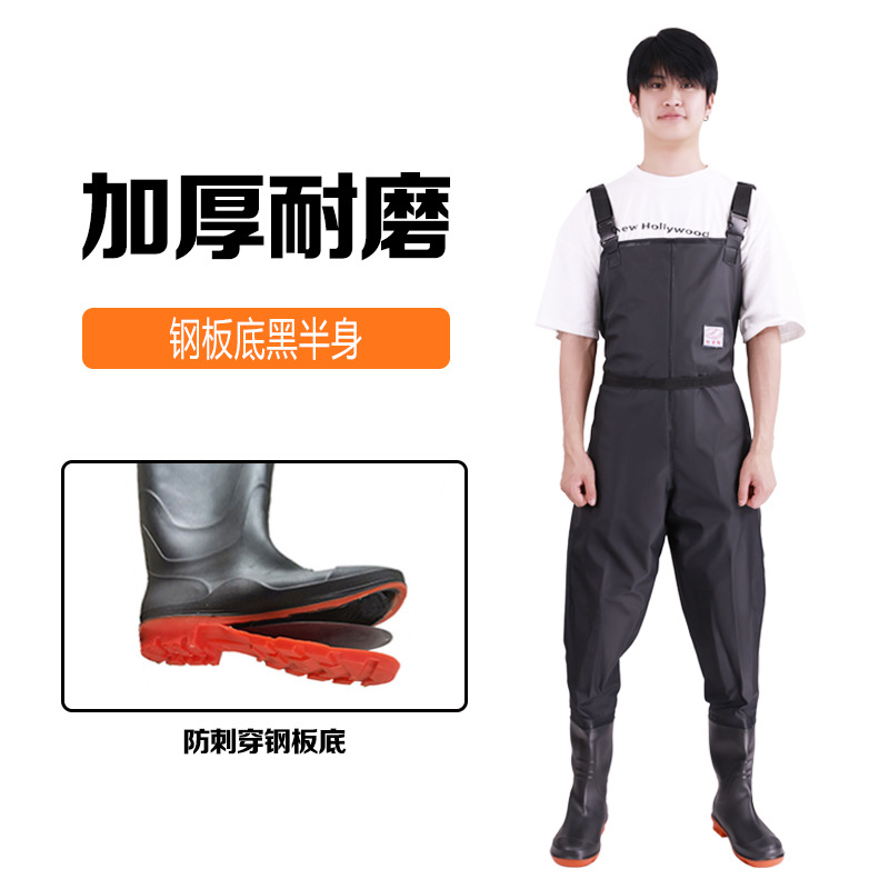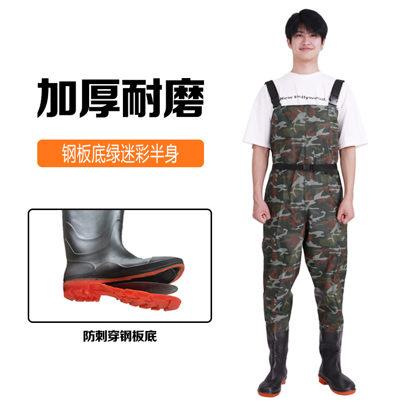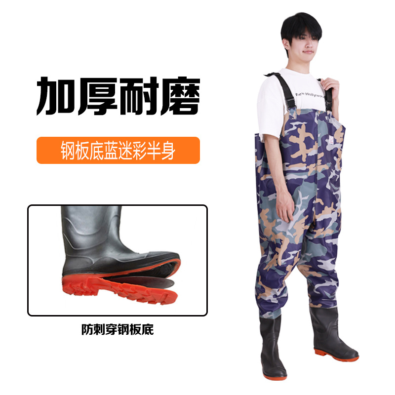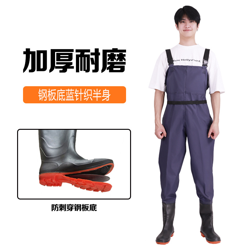 스틸 플레이트 바닥 반 길이 워터 팬츠 저수지 비 신발 방수 옷 물 신발 원피스 남성 가죽 포크 이식 쌀 심기스토어 가기