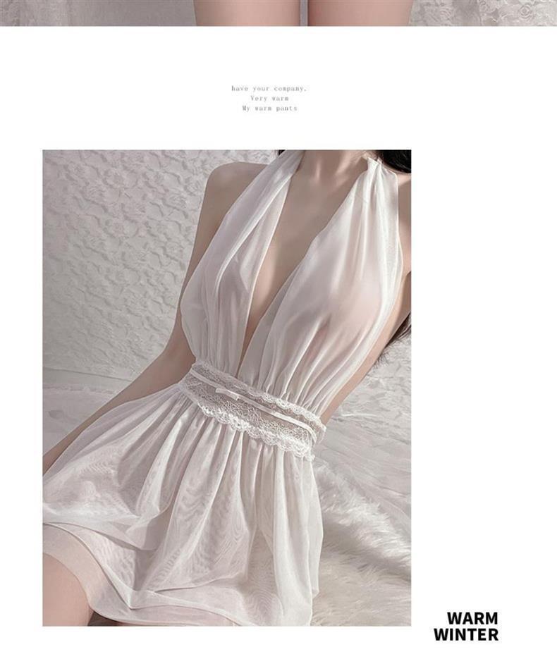 • 흰색 잠옷 + 팬티 + 흰색 스타킹