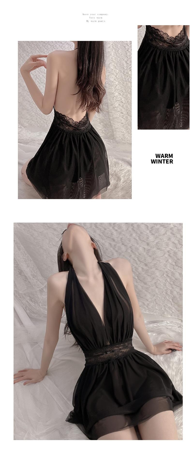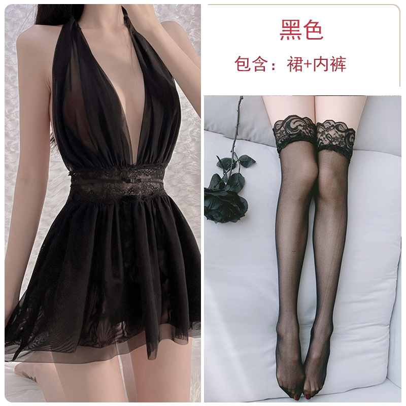 • 검은 잠옷 + 팬티 + 검은 스타킹