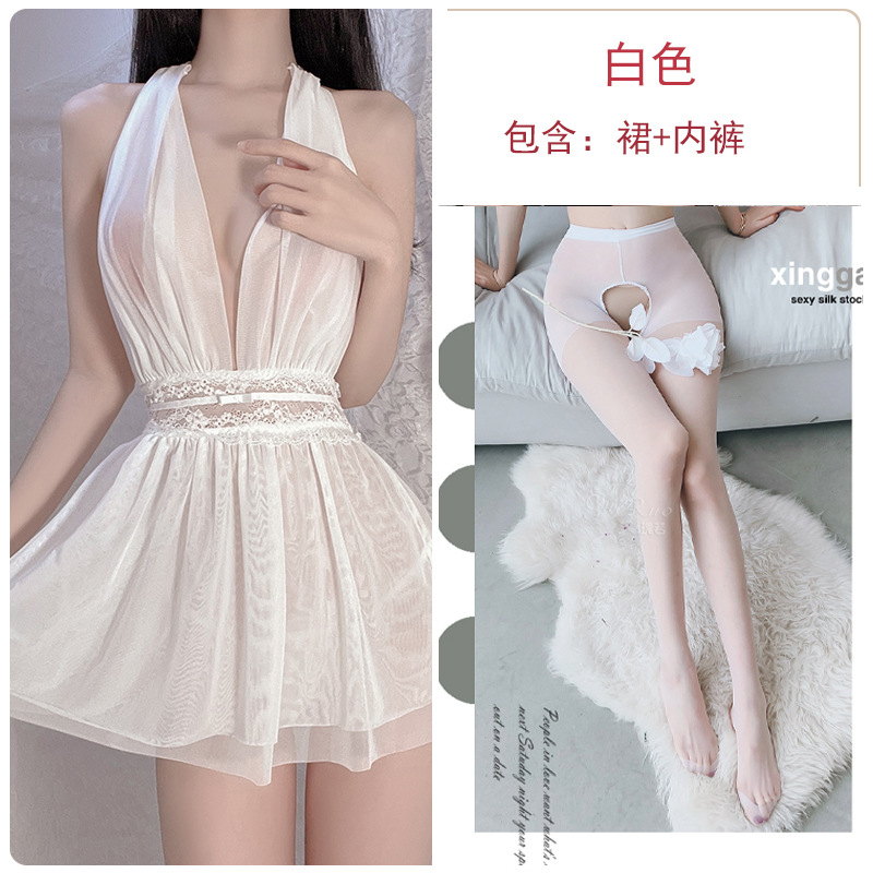 • 흰색 잠옷 + 팬티 + 흰색 그물 스타킹