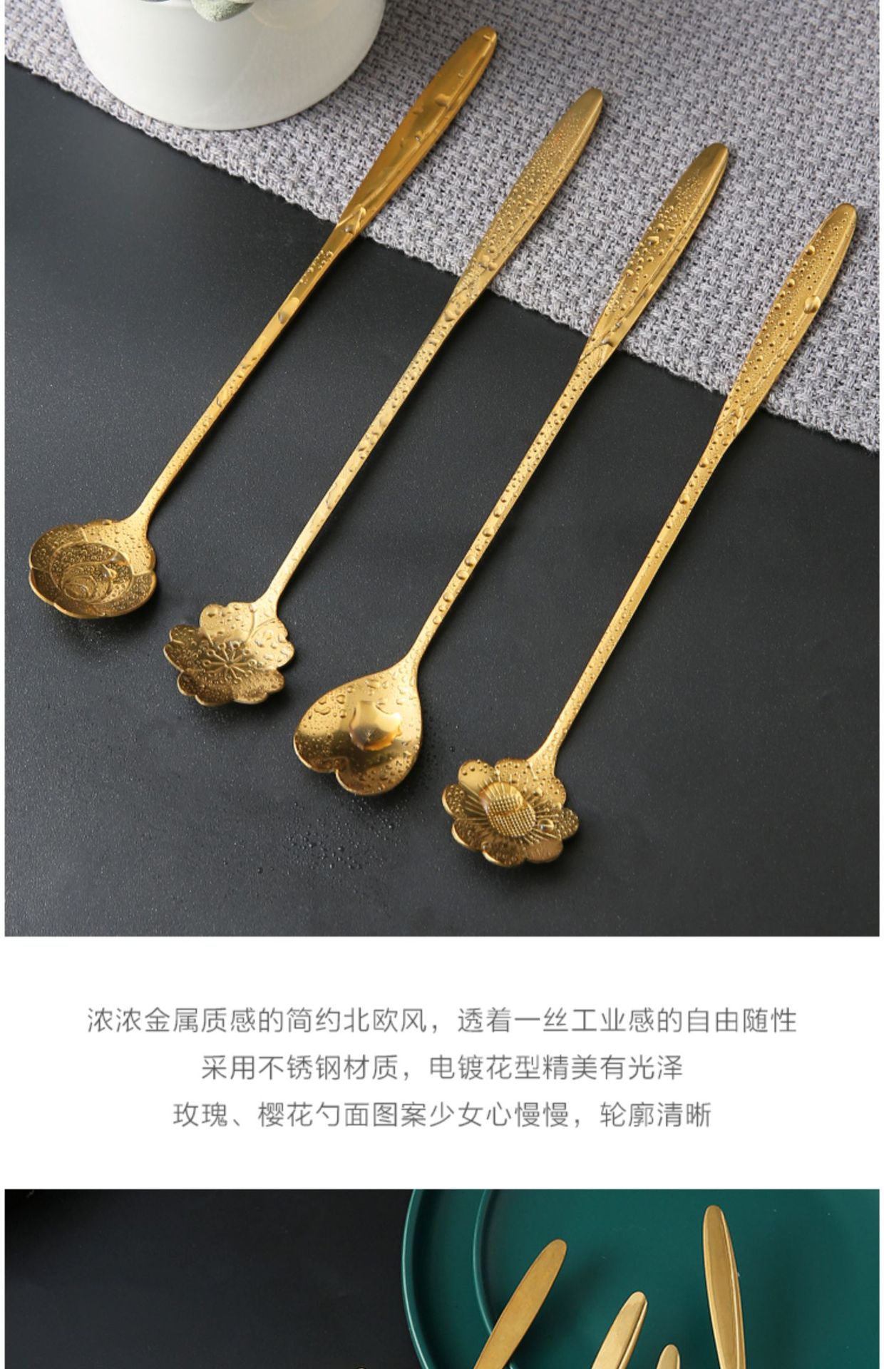 믹싱 스푼 긴 손잡이 스테인레스 스틸 작은 스푼 조미료 커피 스푼 레이어드 크리에이티브 아이스 스푼 디저트 허니 꽃잎 스푼스토어 가기