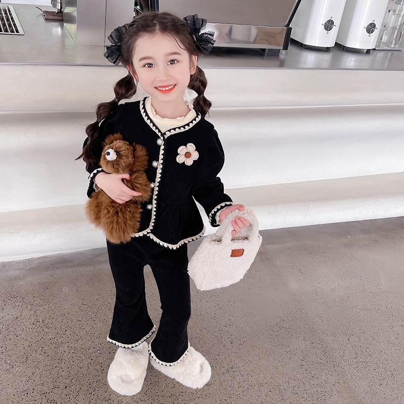 여아용 작은 프랑스 스타일 세트 봄 가을 2024 신상 패셔너블한 아동복 인기 투피스 세트 아기 가을옷