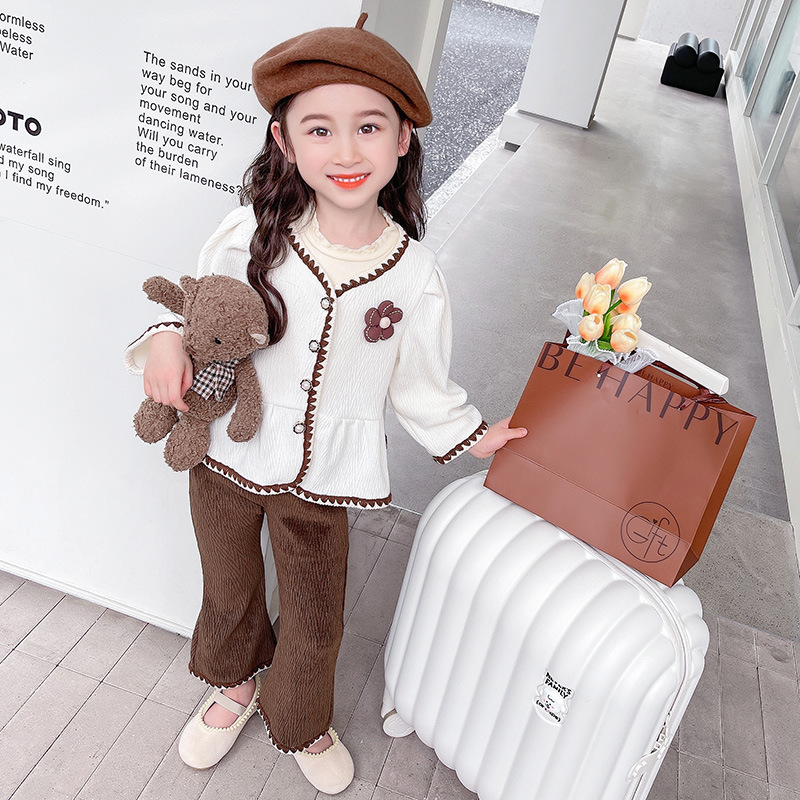 여아용 작은 프랑스 스타일 세트 봄 가을 2024 신상 패셔너블한 아동복 인기 투피스 세트 아기 가을옷스토어 가기