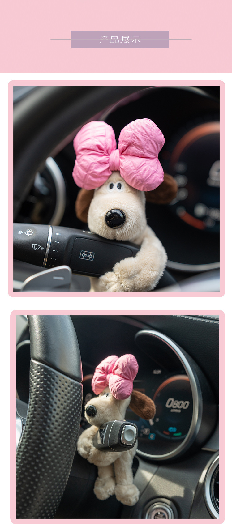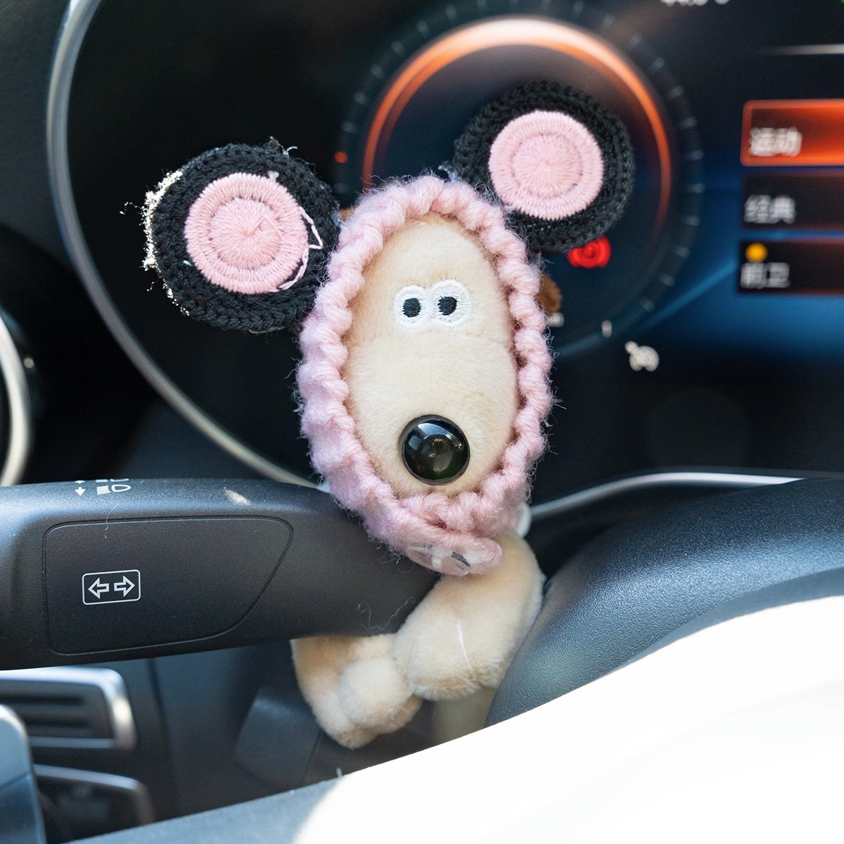 자동차 장식품 귀여운 마스터 개 봉제 인형 느낌 블록 자동차 장식 와이퍼 턴 신호
