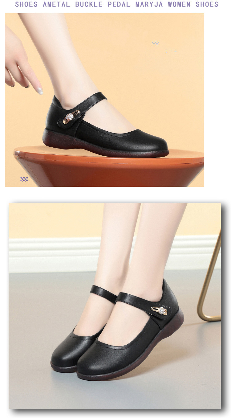 어머니의 신발 봄과 가을 노인 신발 여성용 부드러운 밑창 노인 미끄럼 방지 플랫 슈즈 중년 및 노인 여성 신발 가죽 신발스토어 가기