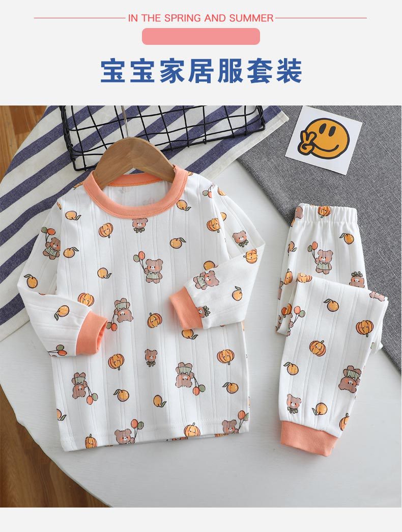 2023 가을 새로운 자카드 면 세트 남자와 여자 긴 소매 속옷 가을 바지 어린이 잠옷 가정 옷스토어 가기