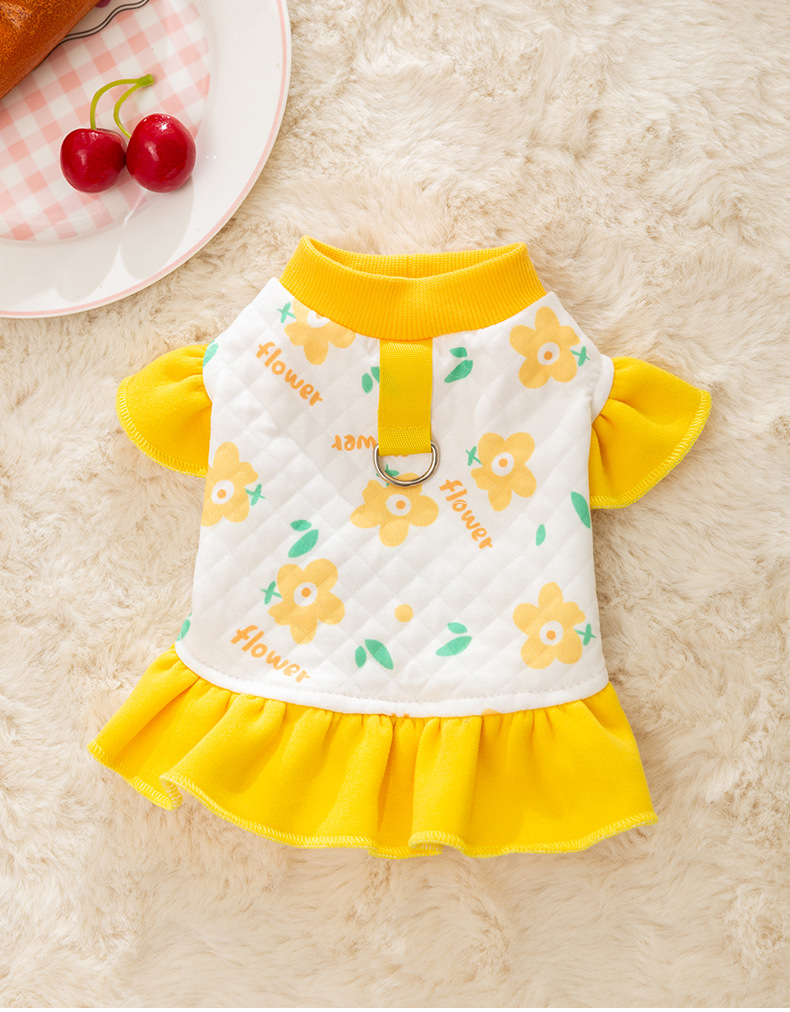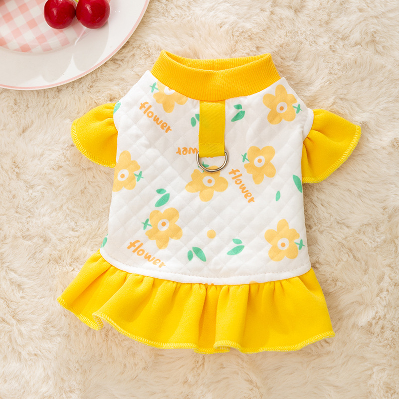 가을과 겨울 개 꽃 전체 인쇄 비행 슬리브 견인 원피스 고양이 두 다리 애완 동물 원피스 공주 스타일 옷