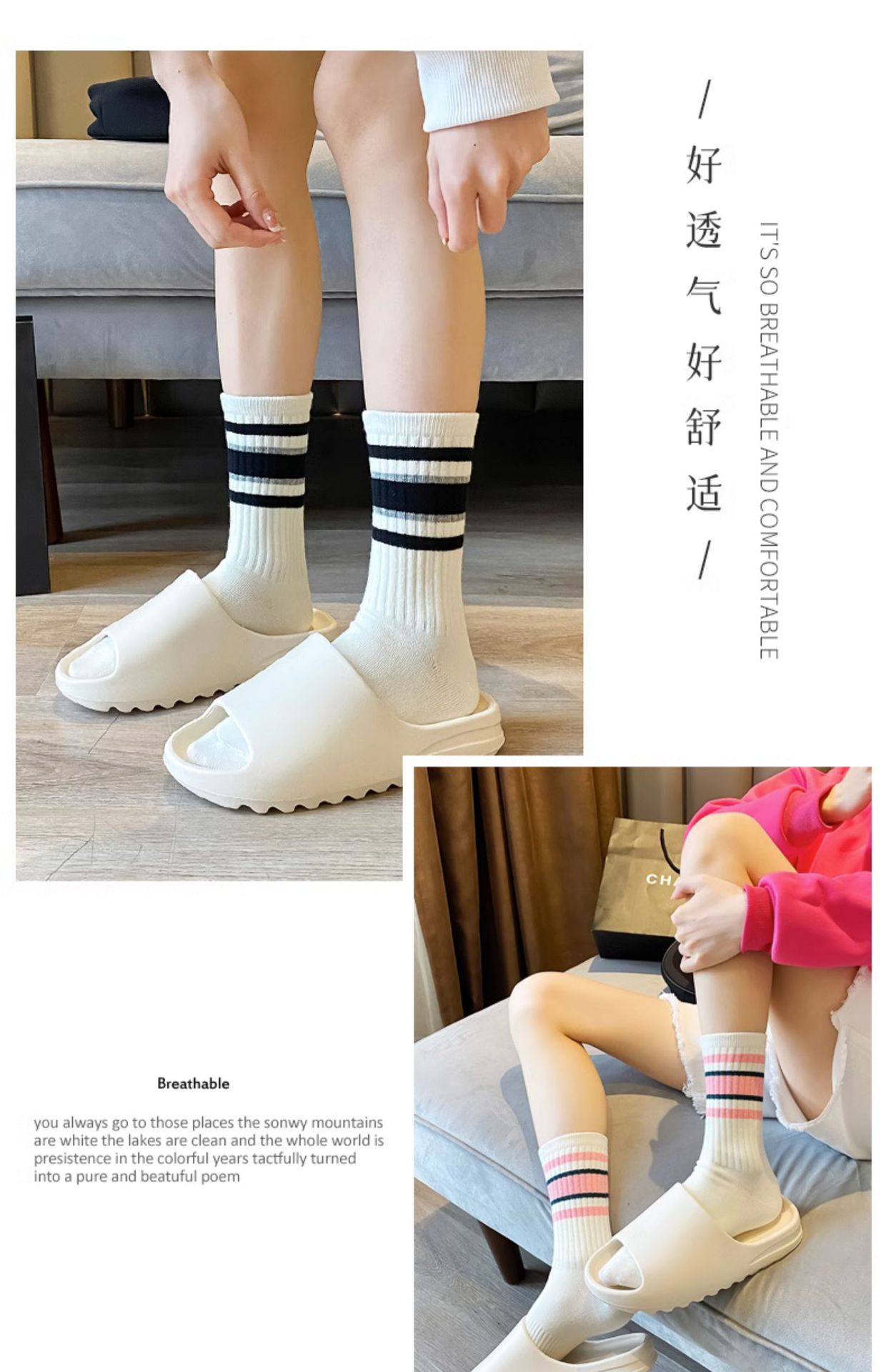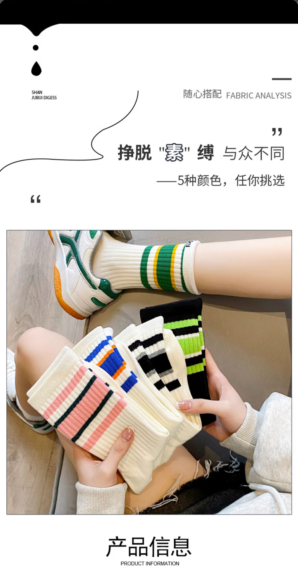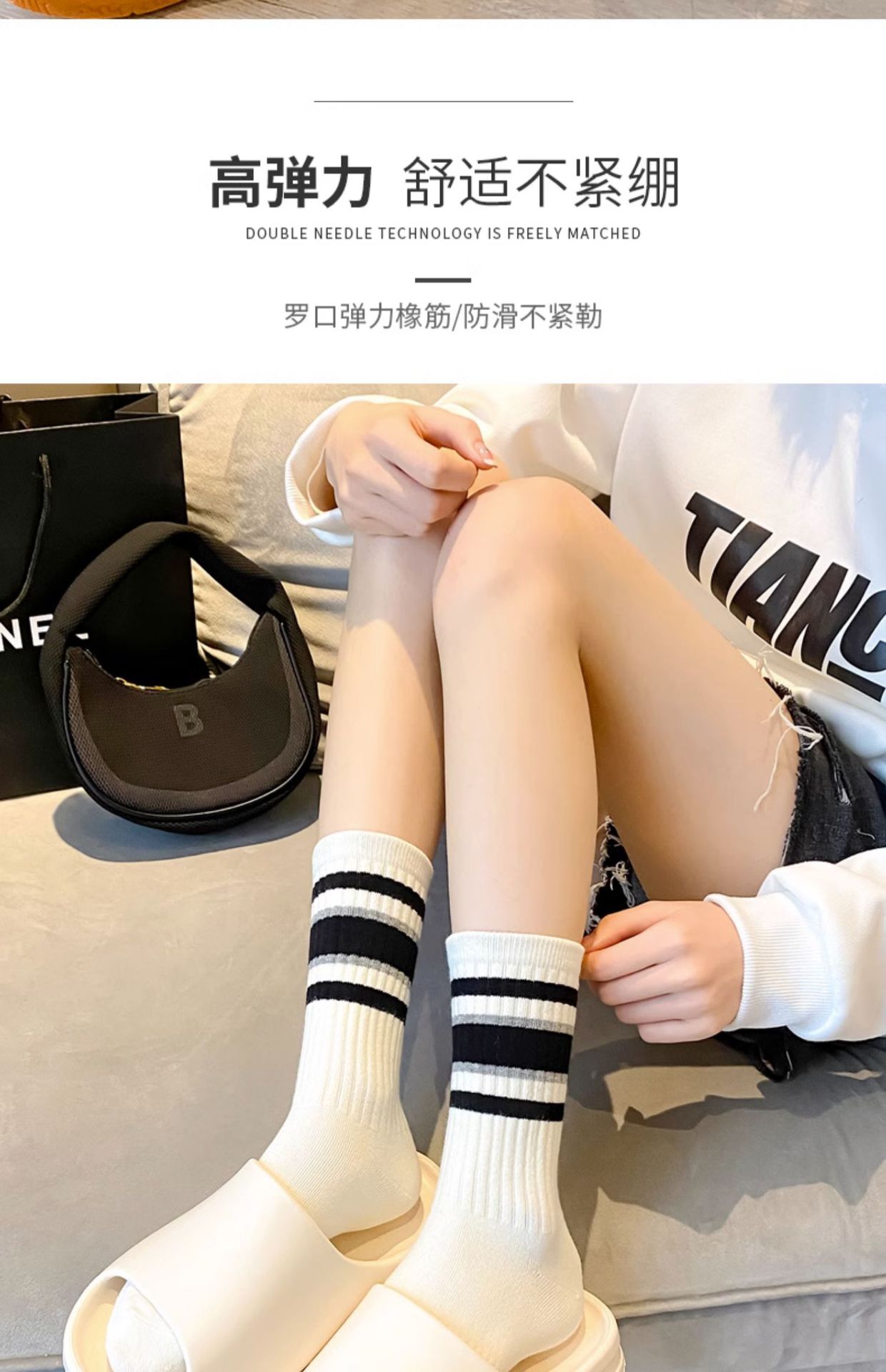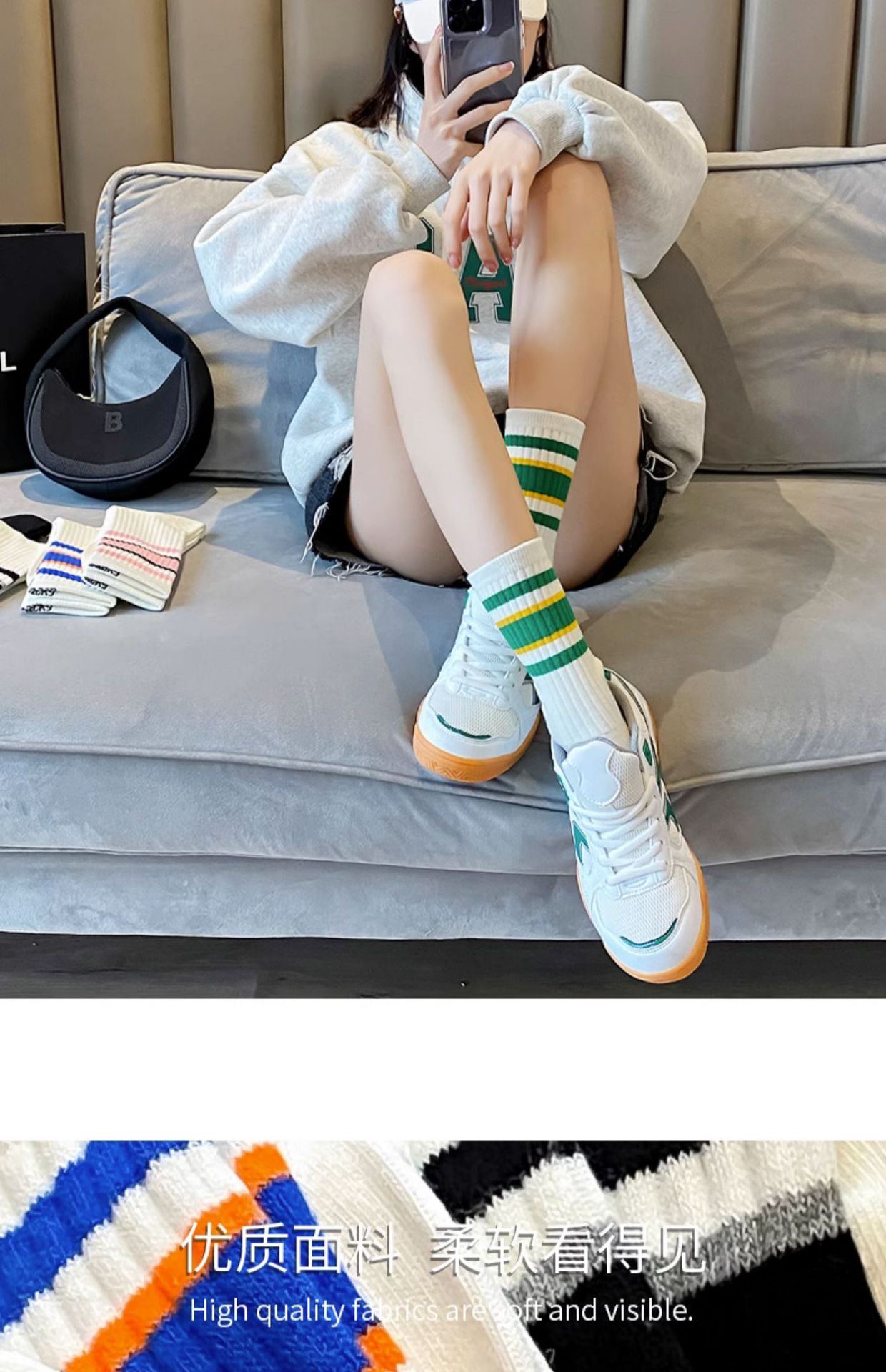 양말 여성용 면 트렌디 얇은 가을과 겨울 스트라이프 스포츠 사이버 연예인 중간 다리 스타킹 스트리트 화이트 신발 상어 바지스토어 가기