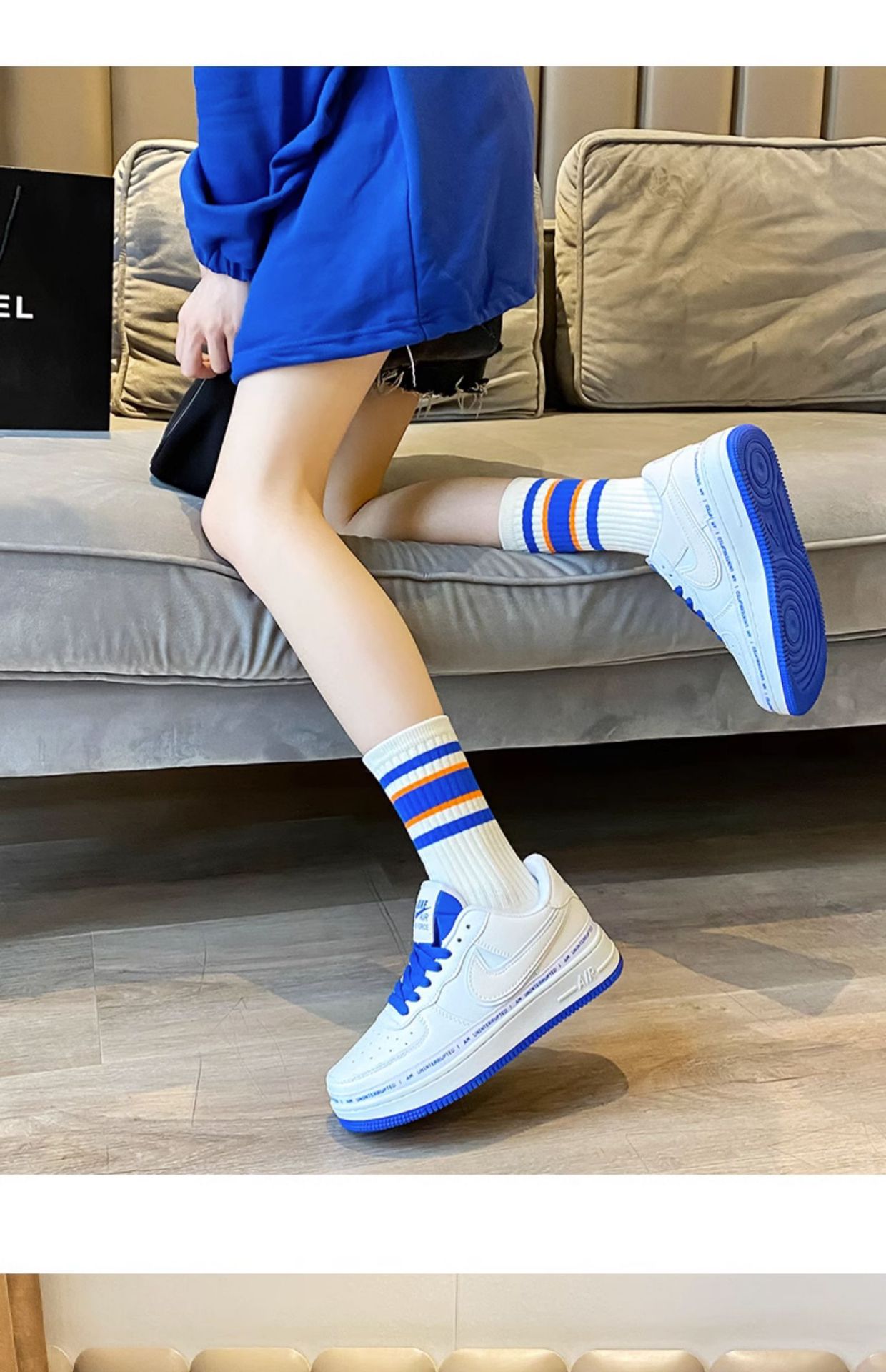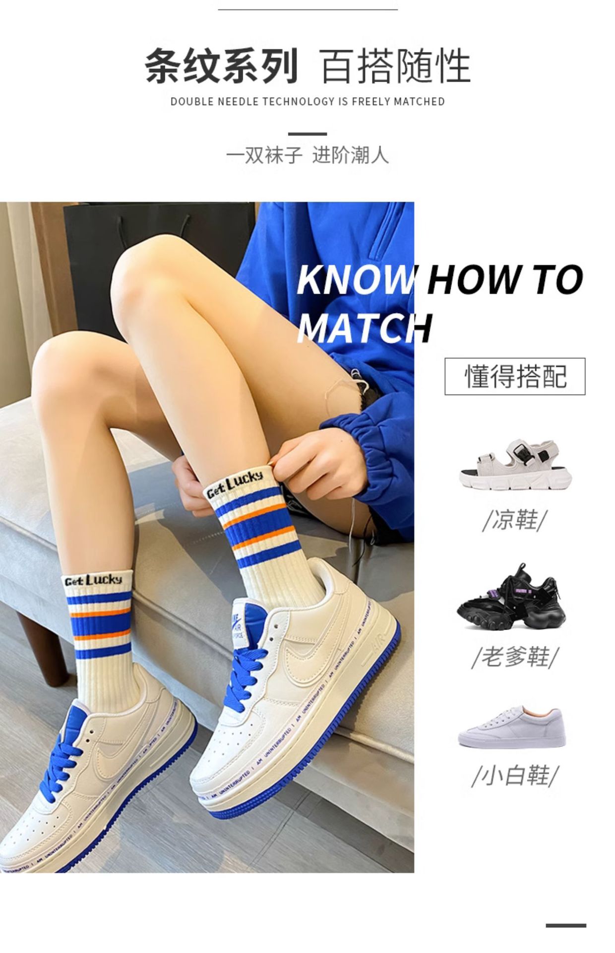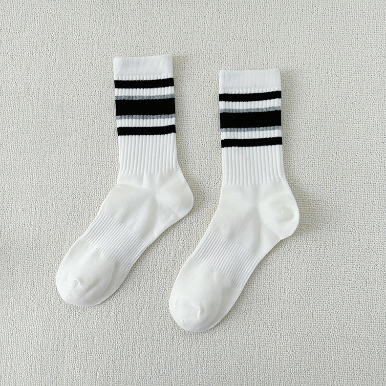 양말 여성용 면 트렌디 얇은 가을과 겨울 스트라이프 스포츠 사이버 연예인 중간 다리 스타킹 스트리트 화이트 신발 상어 바지스토어 가기