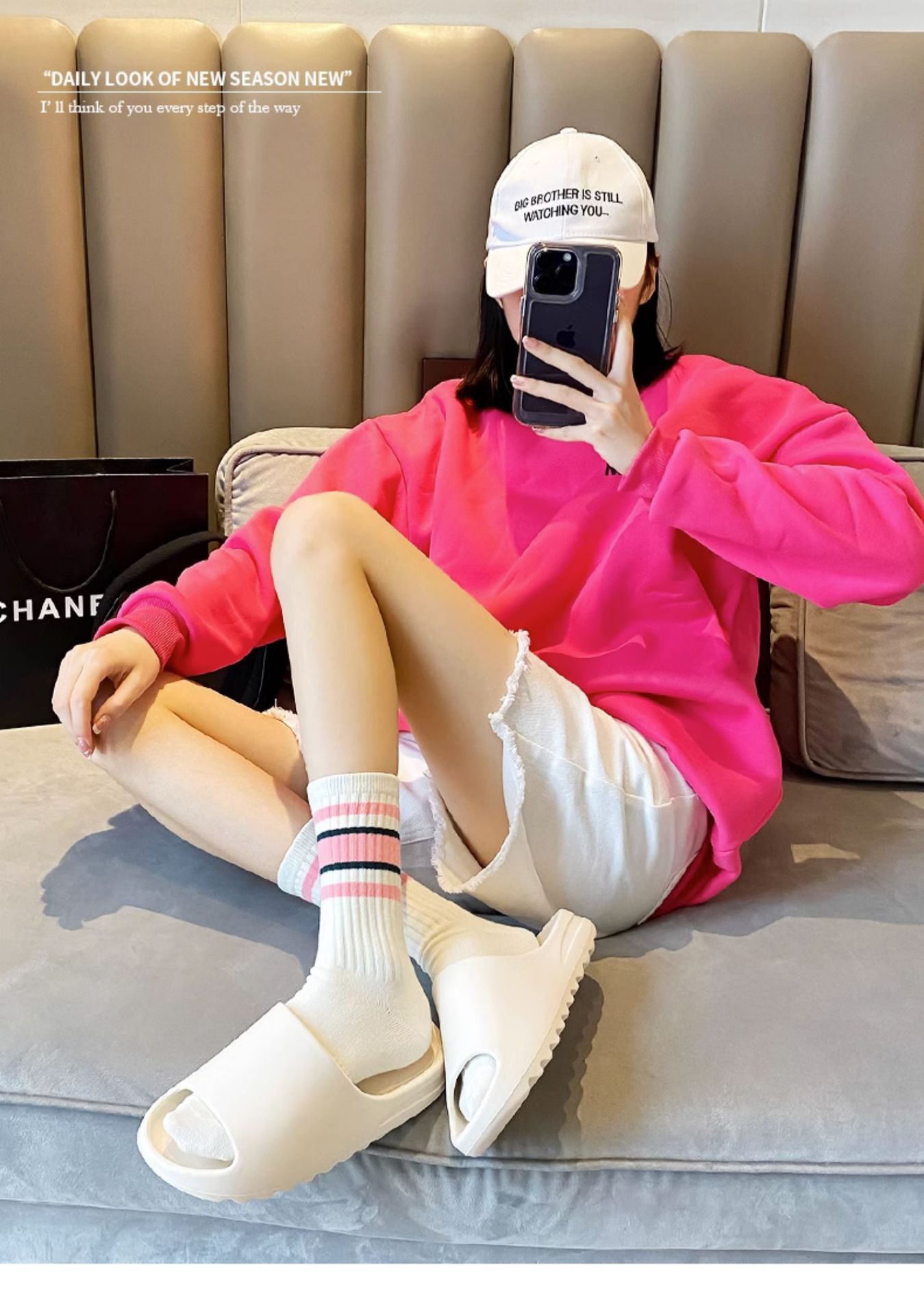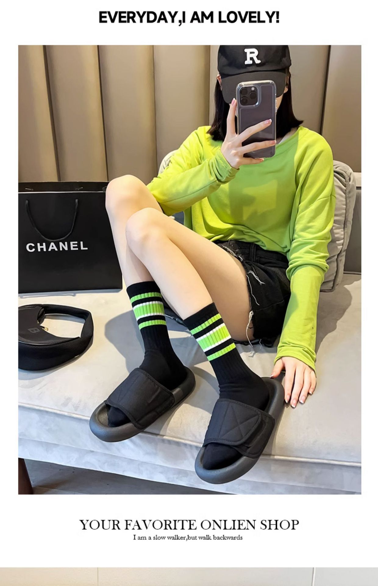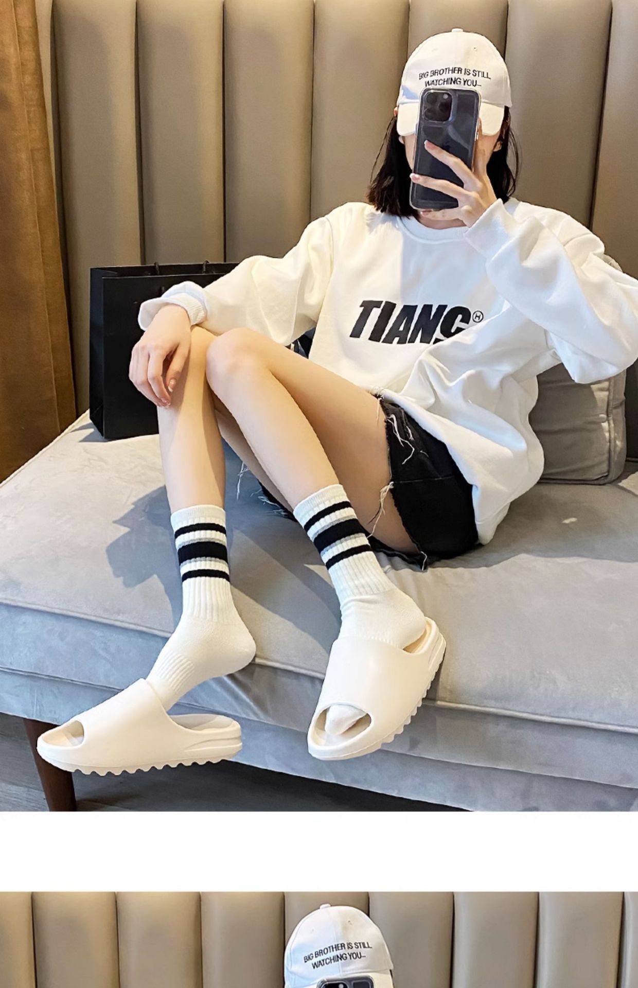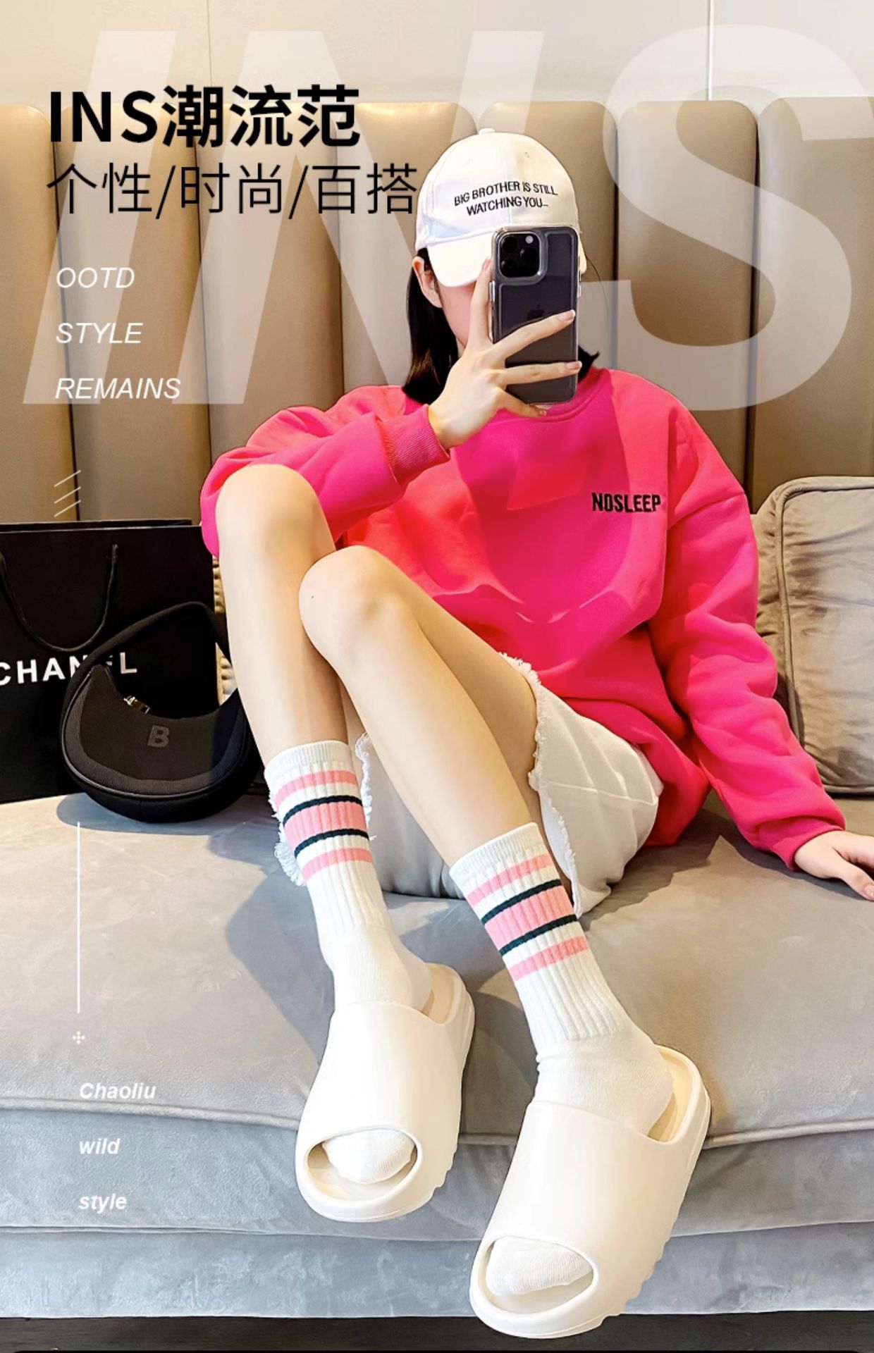 양말 여성용 면 트렌디 얇은 가을과 겨울 스트라이프 스포츠 사이버 연예인 중간 다리 스타킹 스트리트 화이트 신발 상어 바지스토어 가기