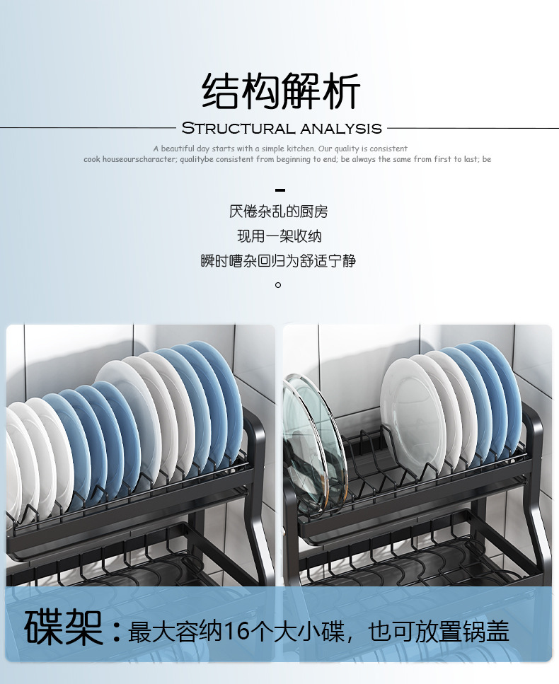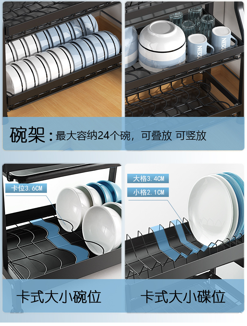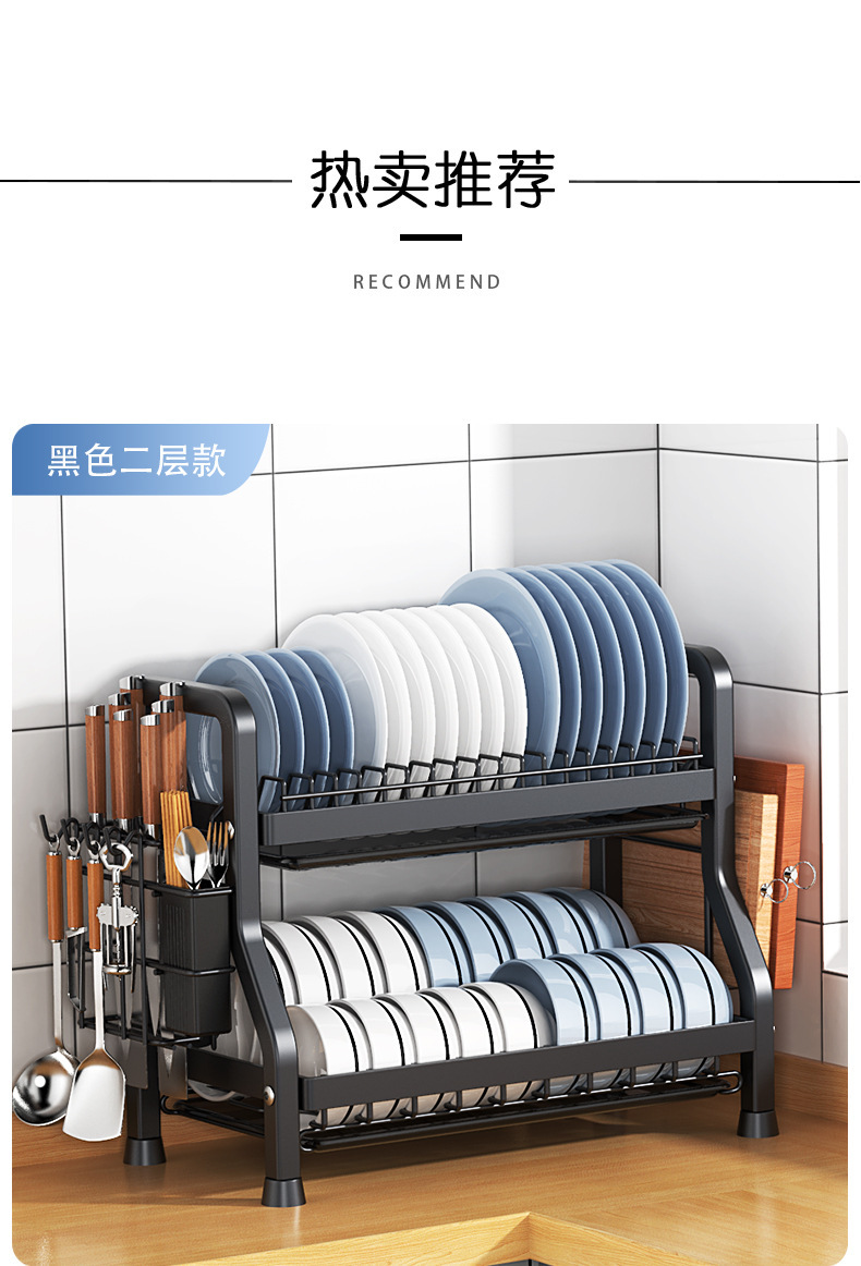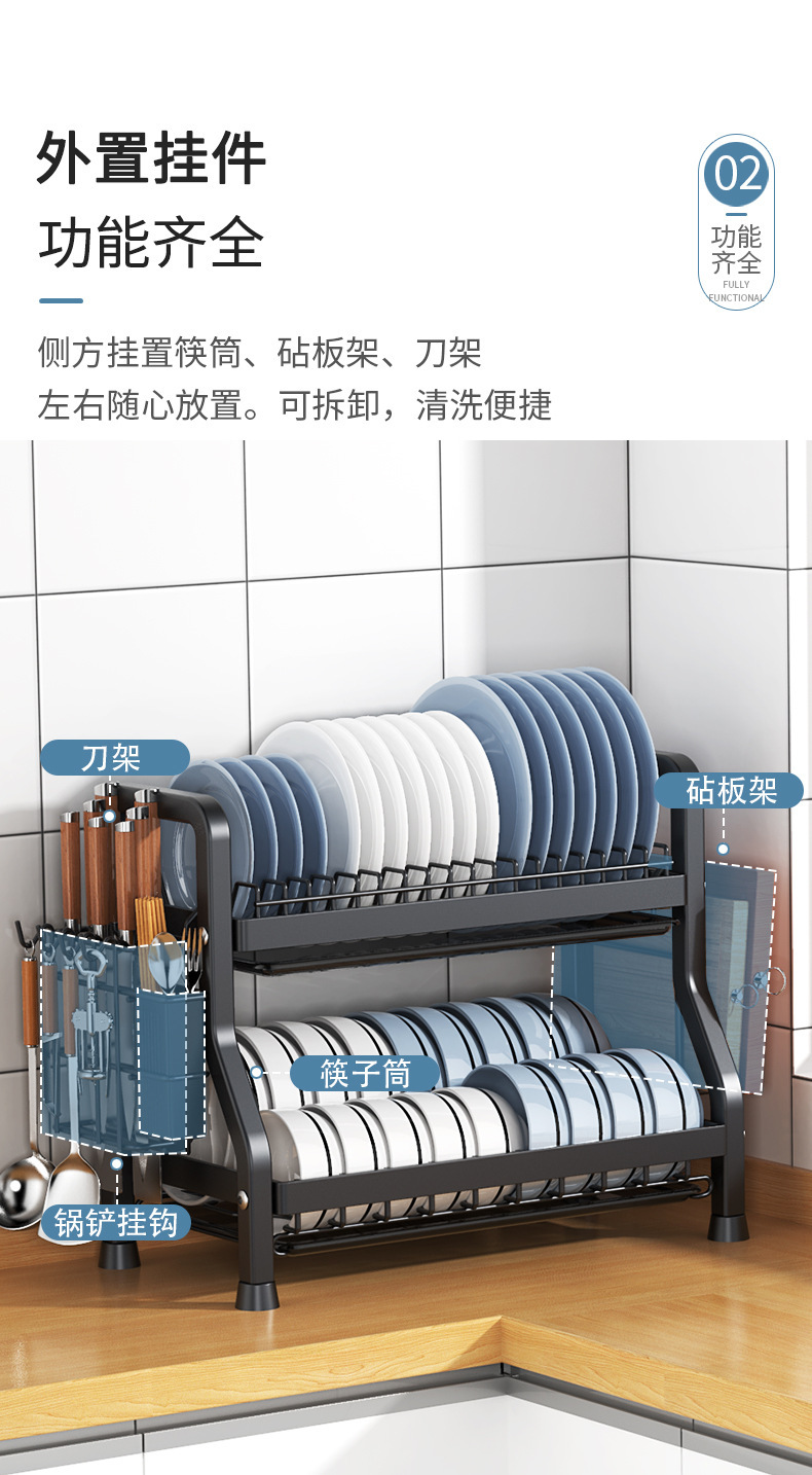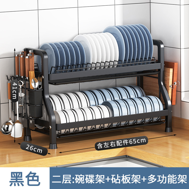 • R 자형 접시 선반 * 더블 레이어 풀 세트 (스몰 사이즈) * 4 후크 젓가락 케이지 * 블랙