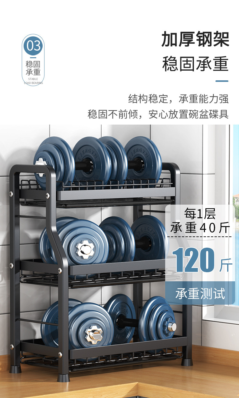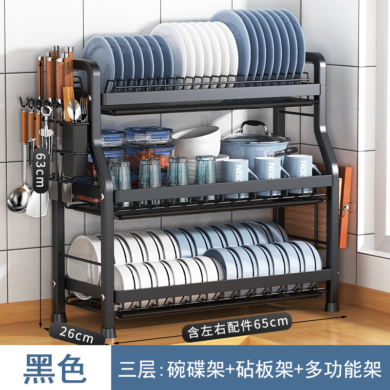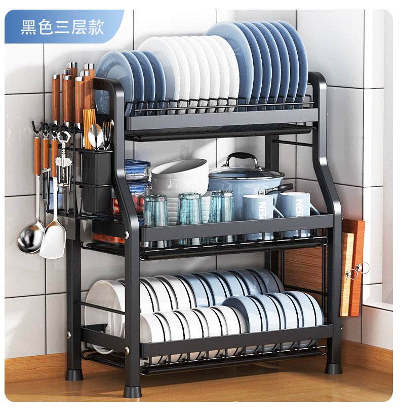 • R자형 접시 걸이 * 3 층 풀 세트 (대형) * 4 후크 젓가락 케이지 * 블랙