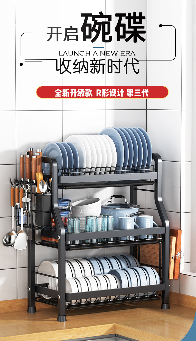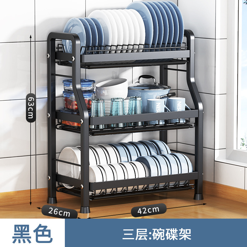 • R 자형 접시 랙 * 3 층 메인 랙 (스몰 사이즈) * 블랙
