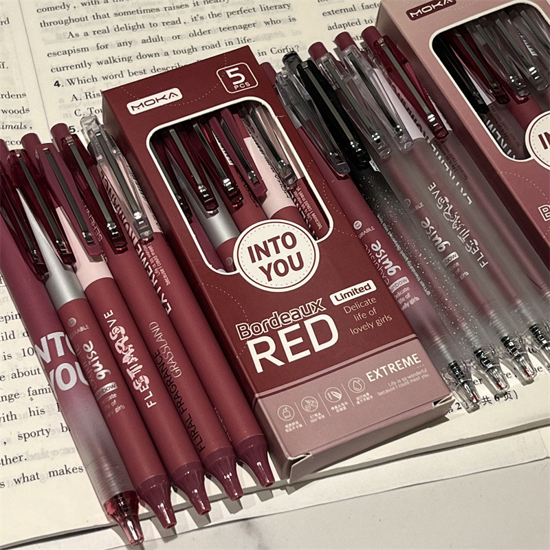스타일 st 소녀의 심장 레트로 프레스 펜 블랙 하이 컬러 값 젤 펜 보르도 레드 프레스 카본 펜스토어 가기