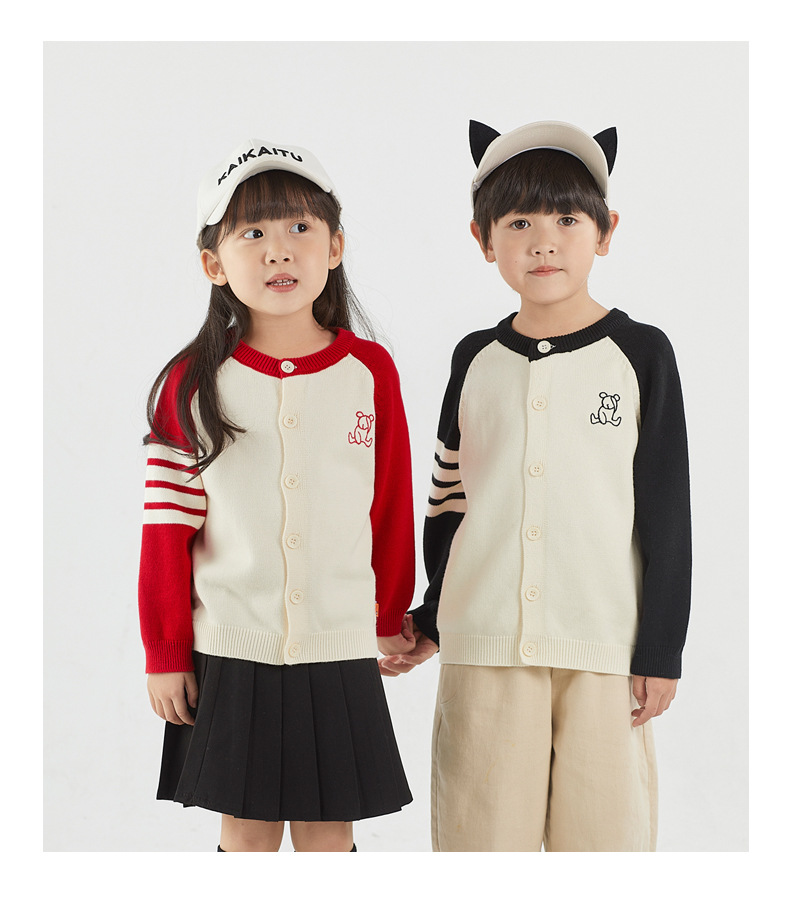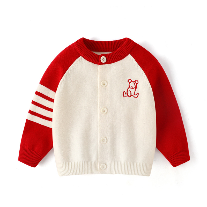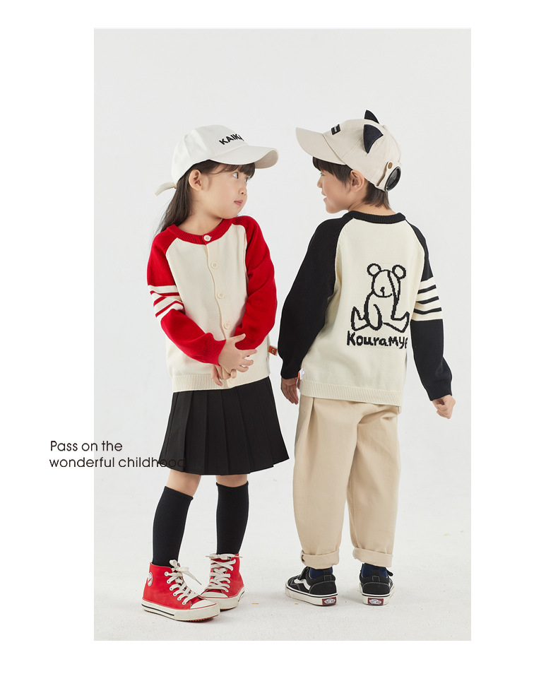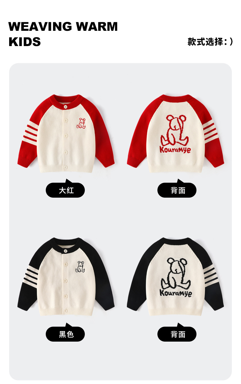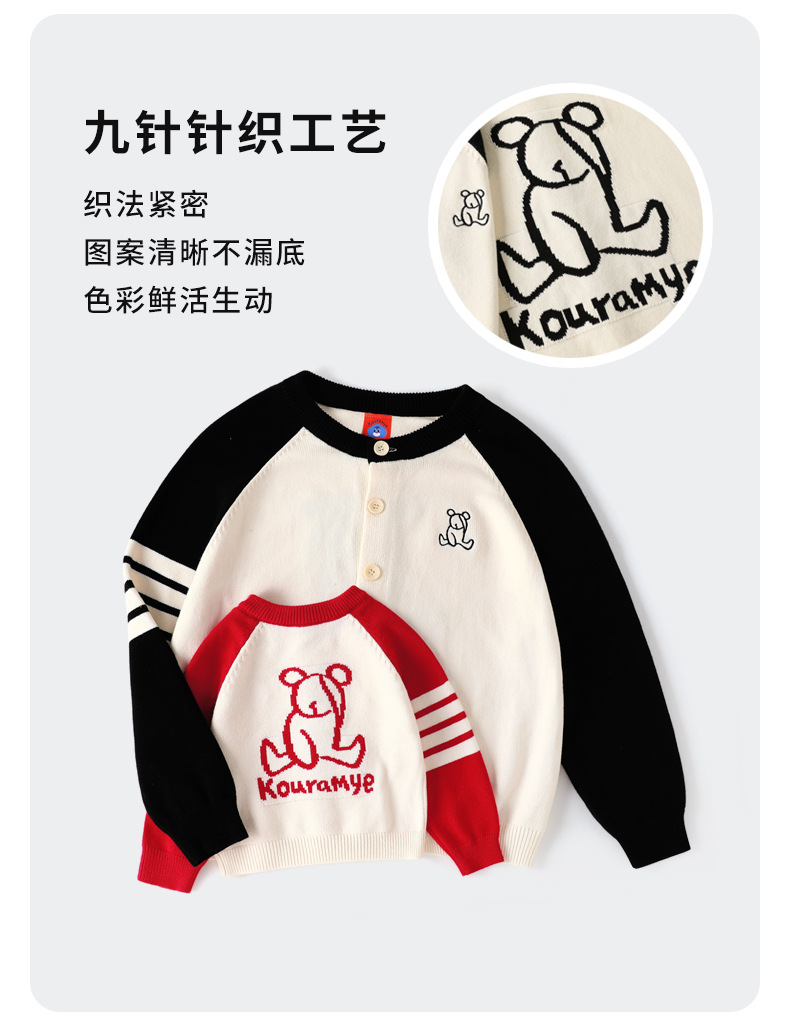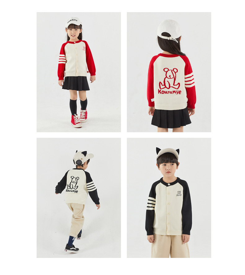 가을 아이 아이 곰 라글란 슬리브 라운드 넥 가디건 한국 스타일 4 개의 따뜻한 스웨터 가족스토어 가기