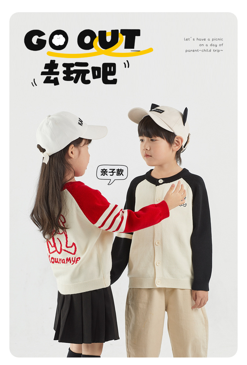 가을 아이 아이 곰 라글란 슬리브 라운드 넥 가디건 한국 스타일 4 개의 따뜻한 스웨터 가족