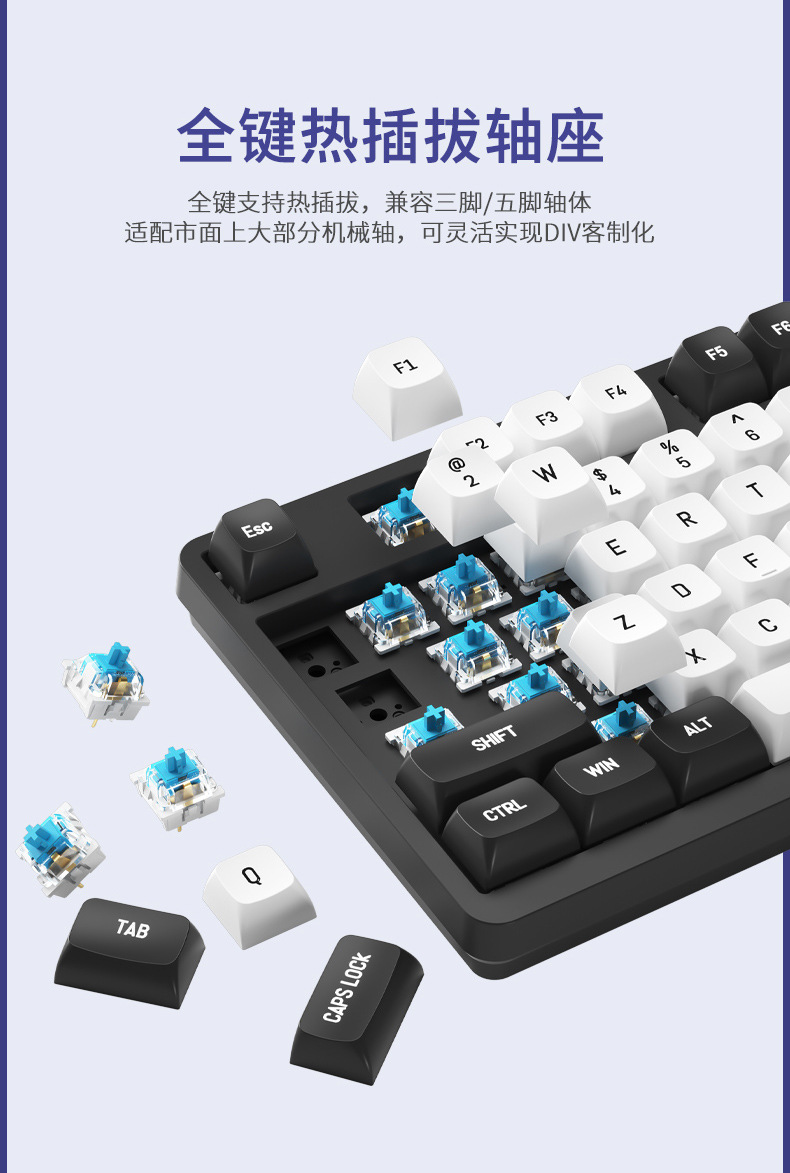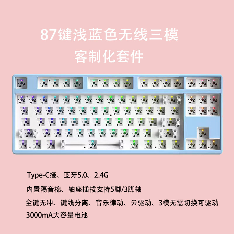 • 87 키 라이트 블루 키트-3 가지 모드-RGB 샤프트 시트 (샤프트 및 키 캡 제외)