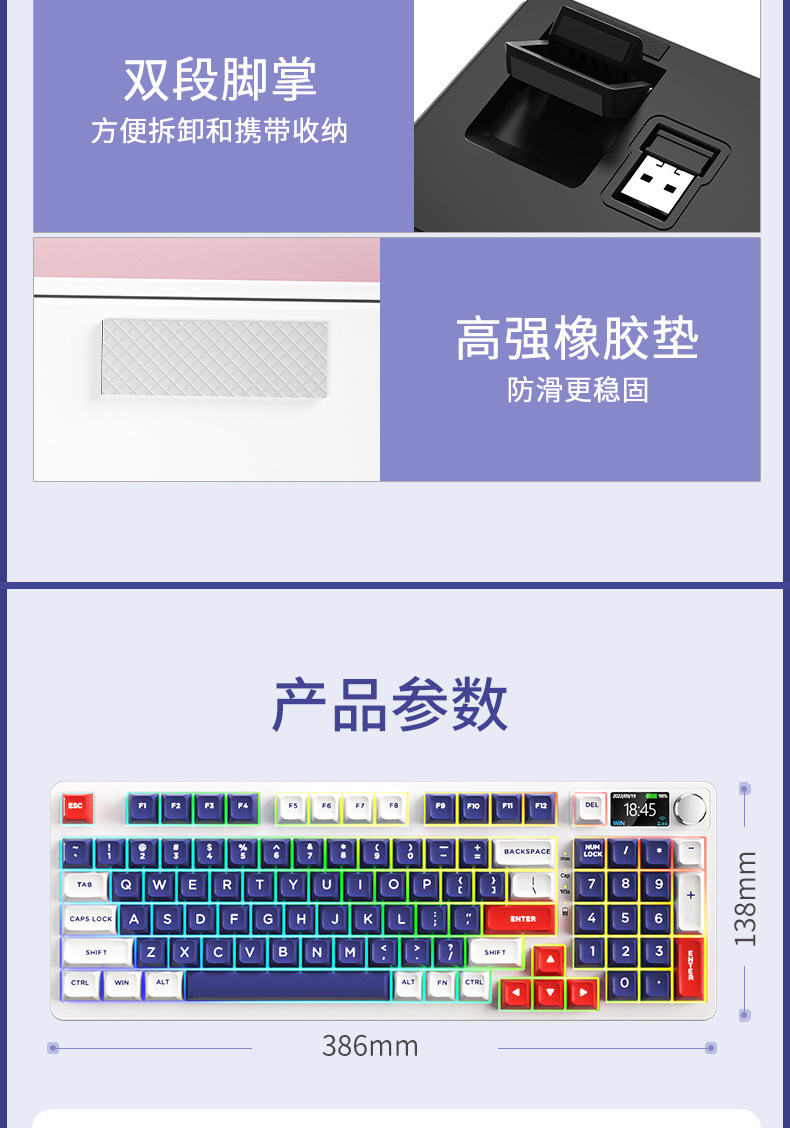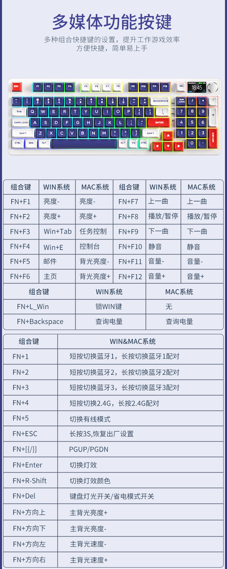 • 108 키 다크 블루 키트-3 가지 모드-RGB 샤프트 시트 (샤프트 및 키 캡 제외)