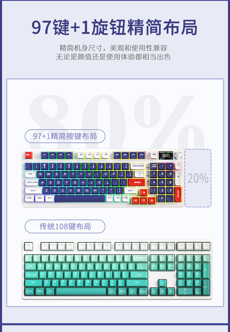• 98 LCD 화면 버전 흰색 키트-세 가지 모드-노브-RGB-샤프트 시트 (샤프트 및 키 캡 없음)