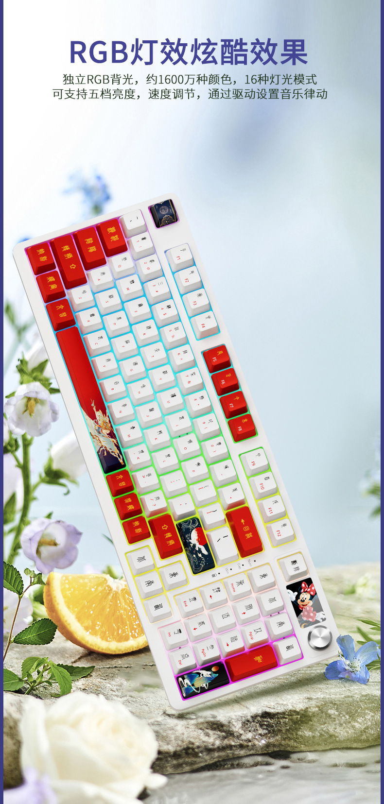 • 98 키 화이트 키트-3 가지 모드-노브-RGB 샤프트 시트 (샤프트 및 키 캡 없음)